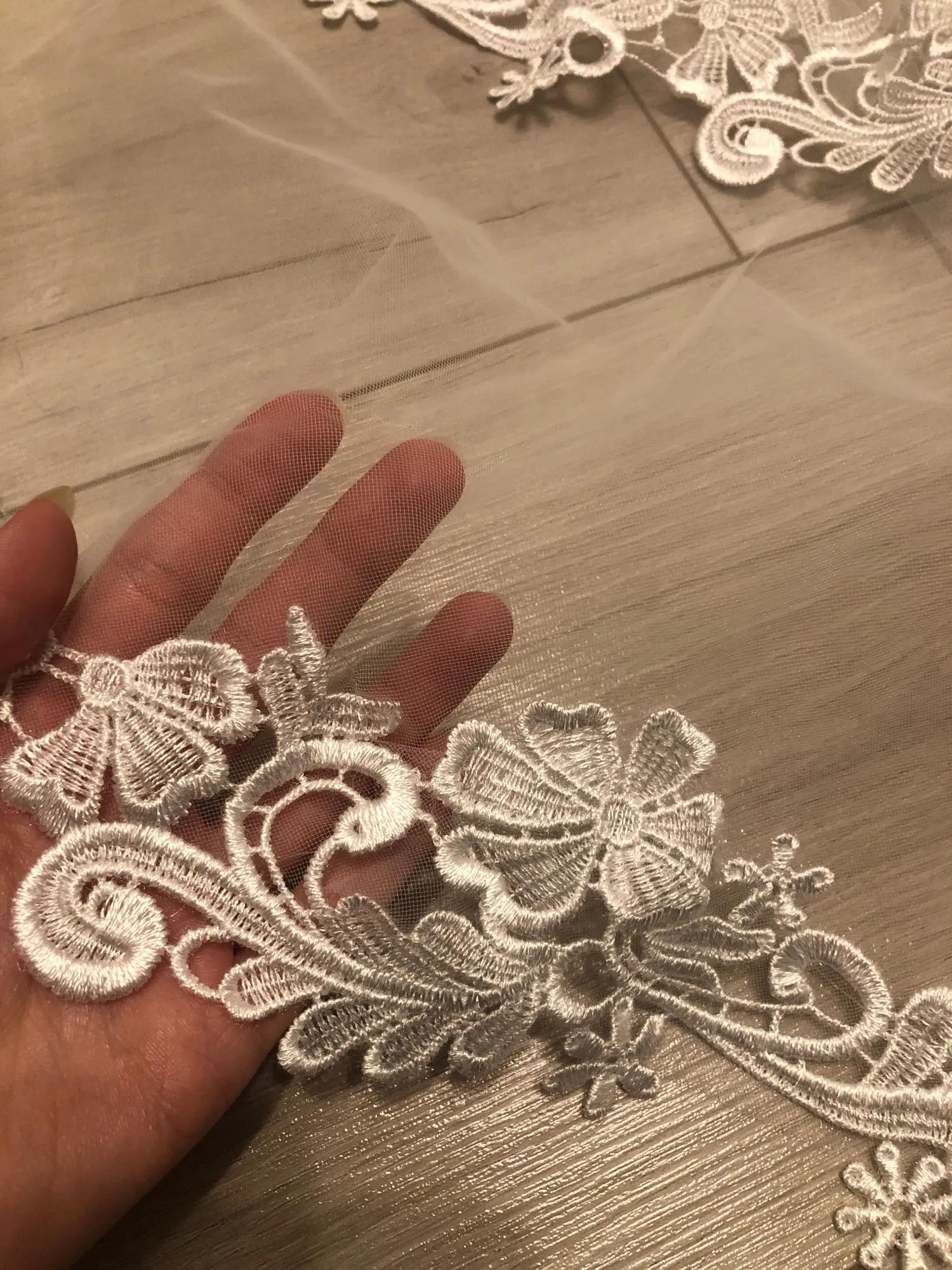 Фата свадебная двухслойная с гребнем и кружевными краями, 1,5 м