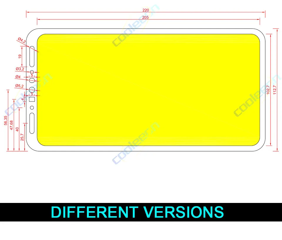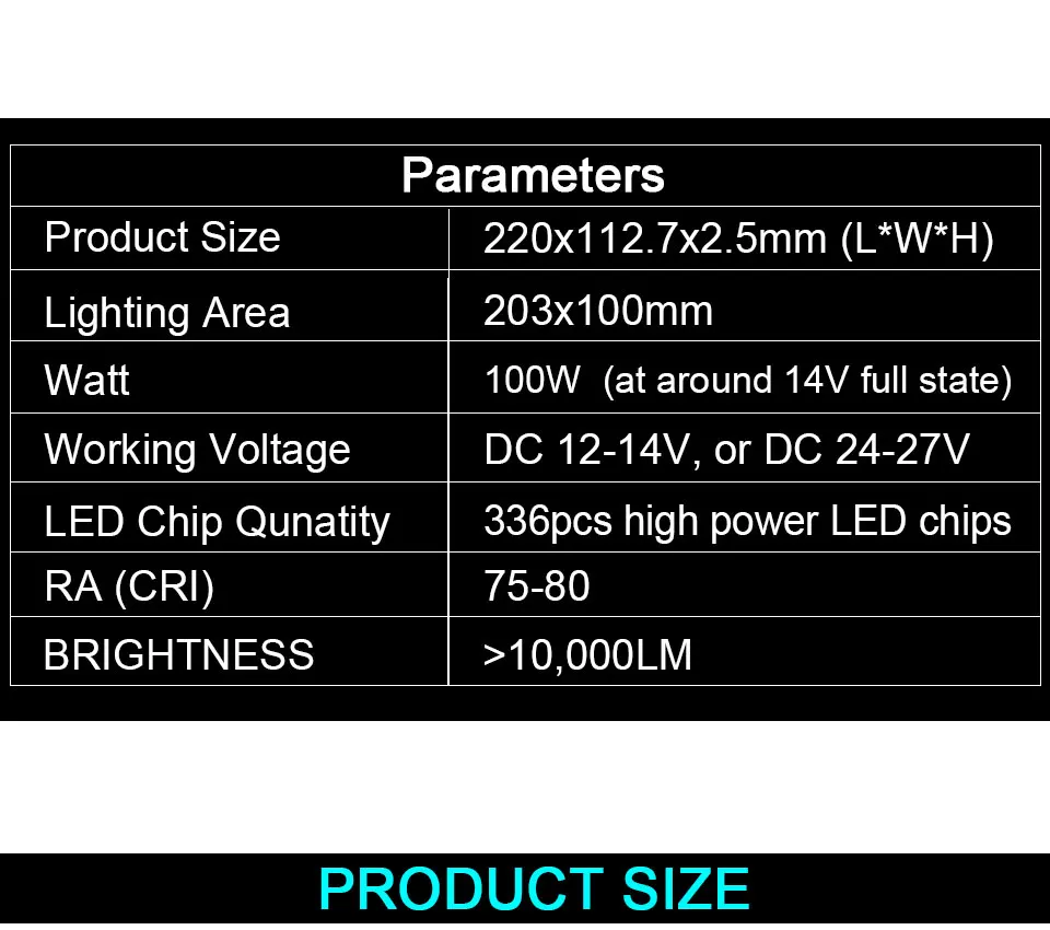 Размер светодиода COB: 220*112,7 мм