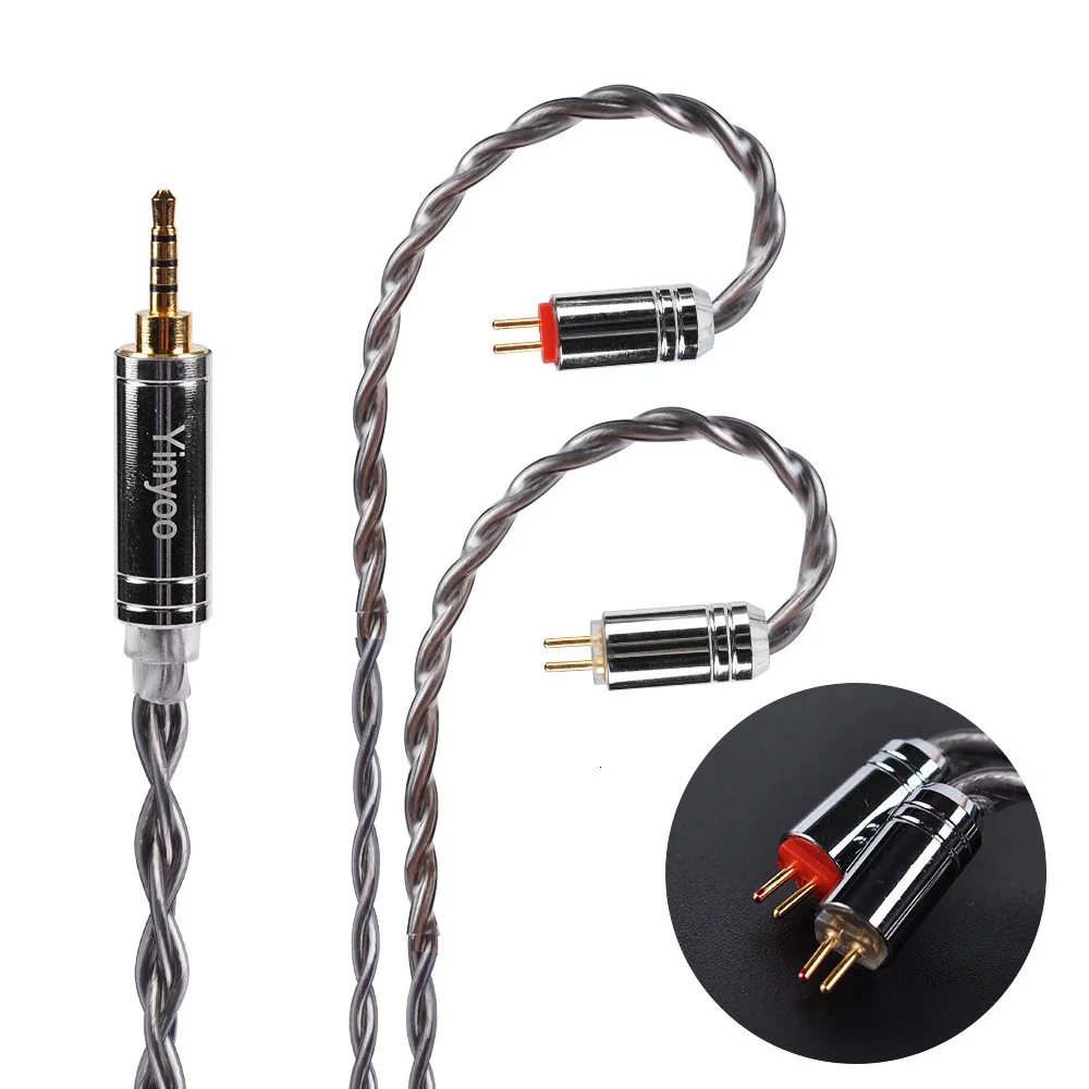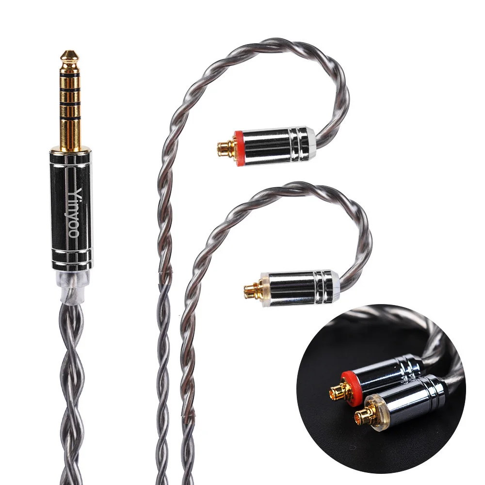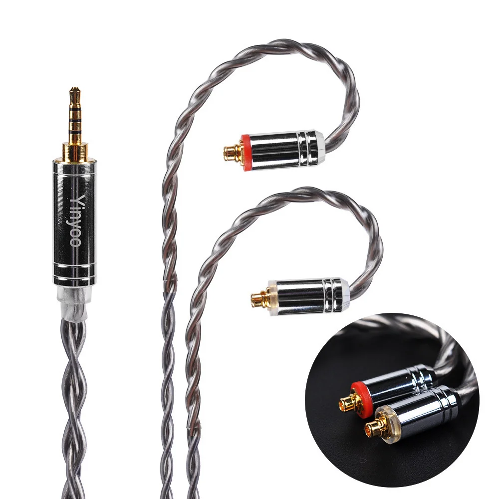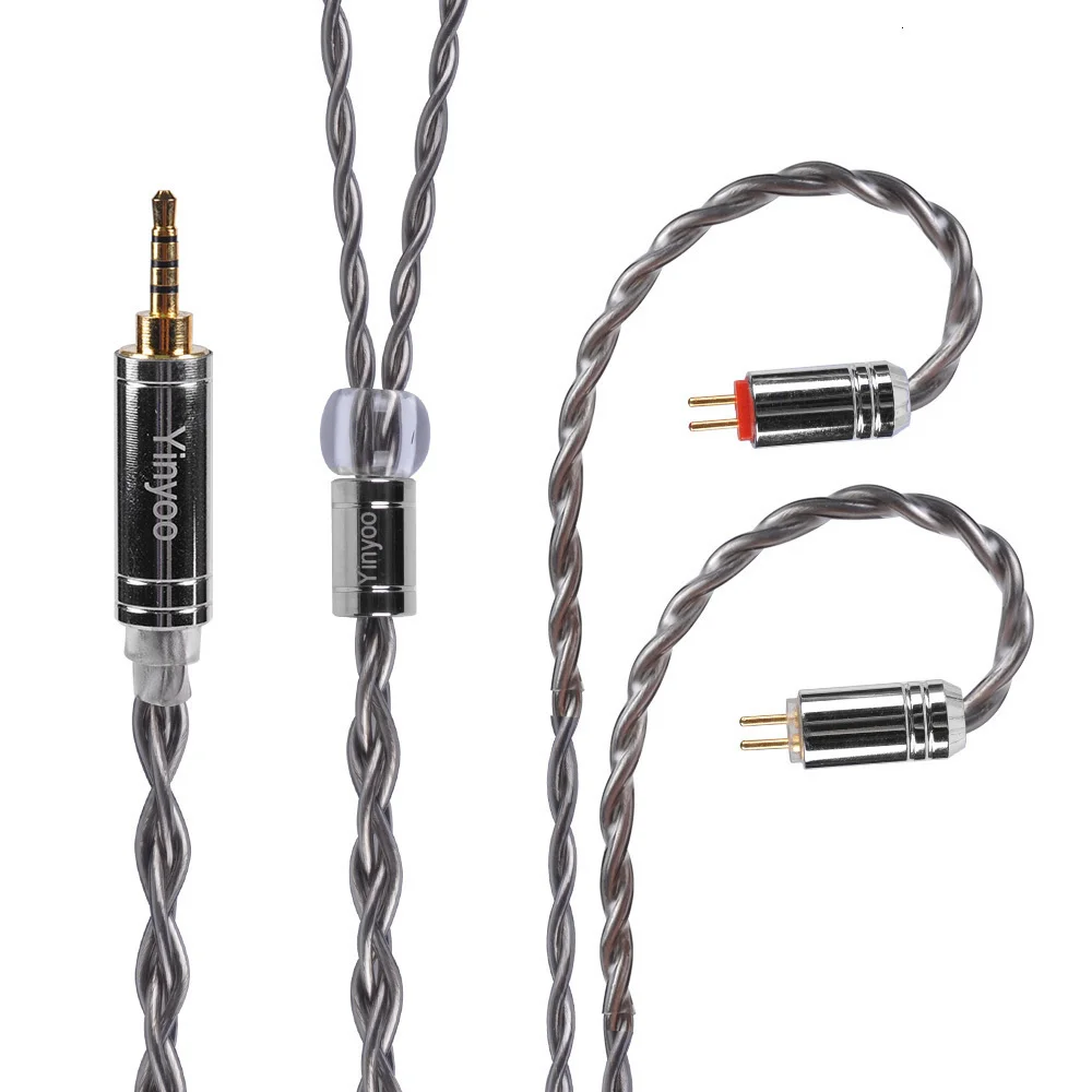 Yinyoo 4 ядра 7N однокристаллический медный кабель 2,53,54,4 мм OCC посеребренный кабель BLON BL-01 BL-03 KZ ZST X ZST TINHIFI T2 T4