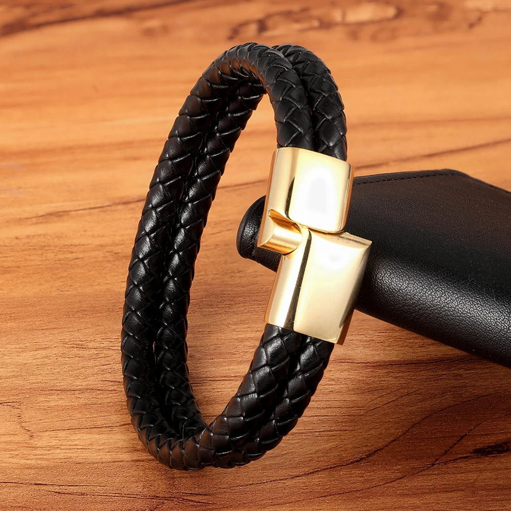 Классический кожаный браслет из нержавеющей стали, 2 цвета, черный ...