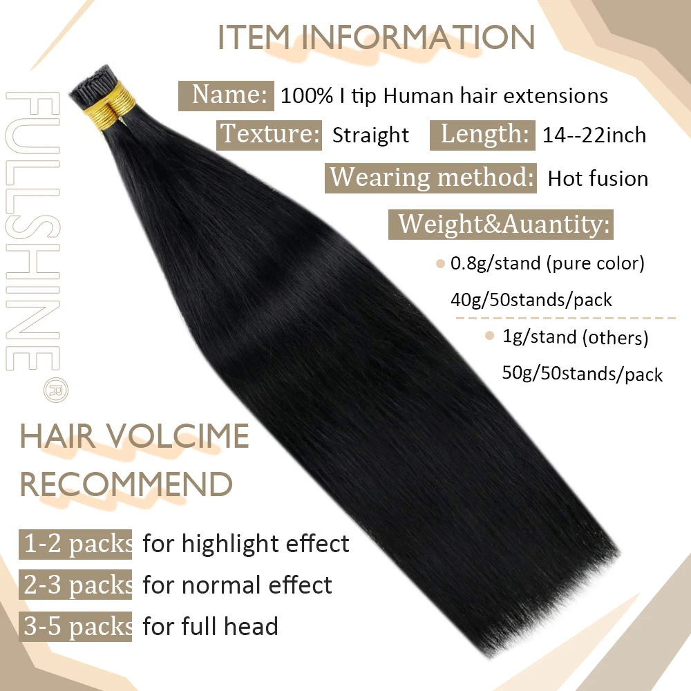 Наращивание человеческих волос Full Shine I Tip, 50 грамм, предвари...