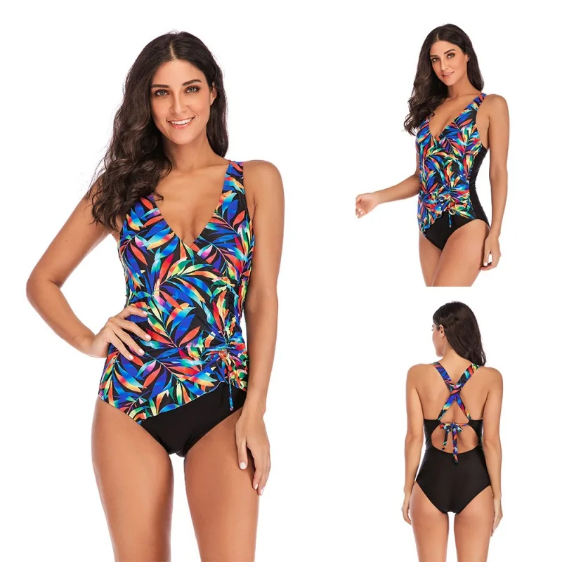 Женский слитный купальник, монокини с мягкими чашечками и принтом, размера плюс