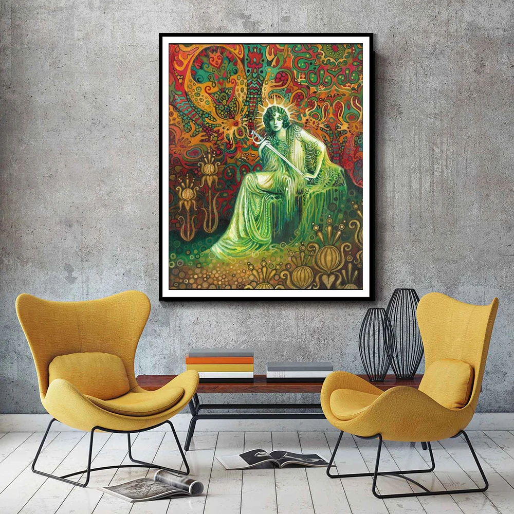 Психоделическая Цыганская королева палочек Таро Художественная печа...