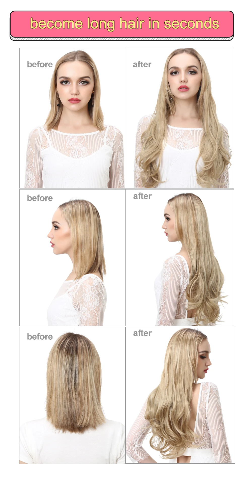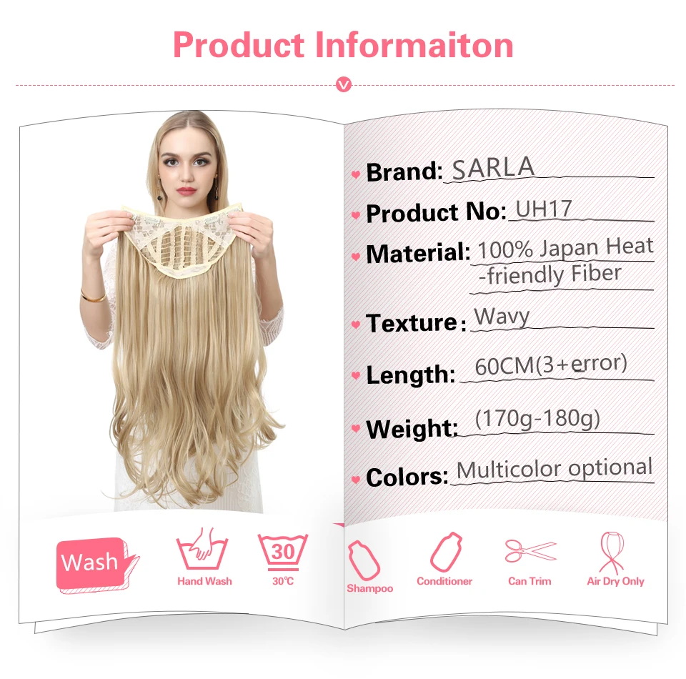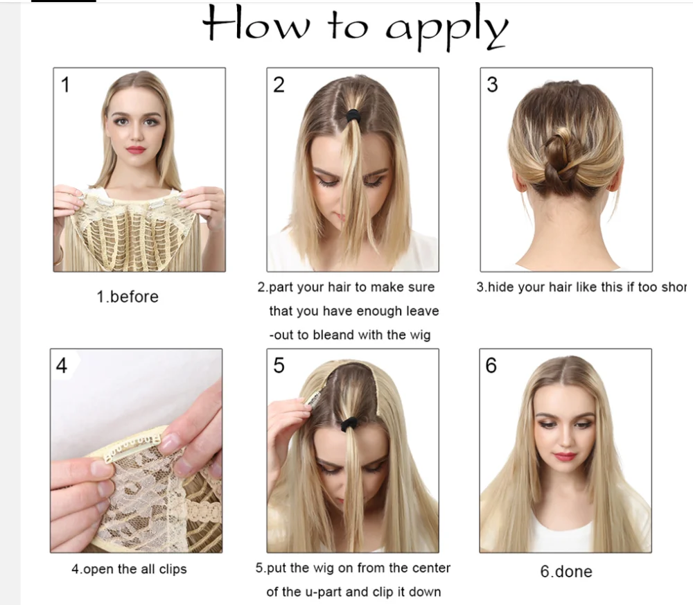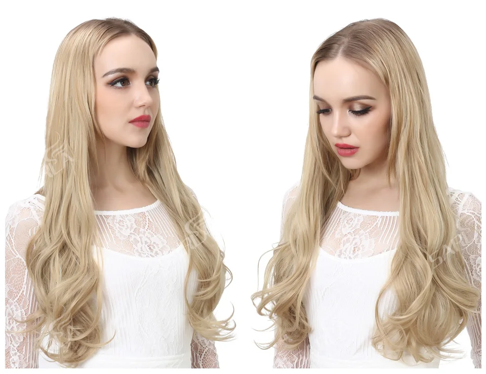 Волнистые U-образные парики для женщин, накладные волосы на заколках, невидимые наполовину искусственные синтетические парики, длинные светлые черные натуральные шиньоны
