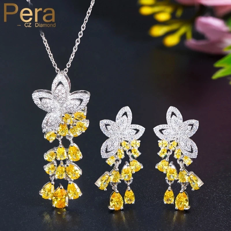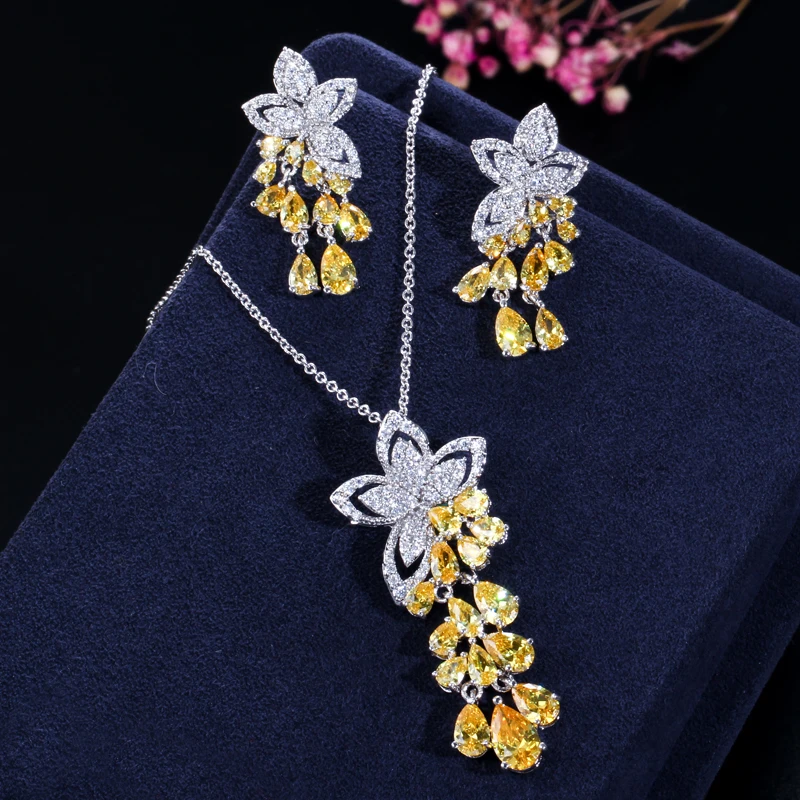 Ожерелье и серьги-капельки AAA + с желтым кристаллом