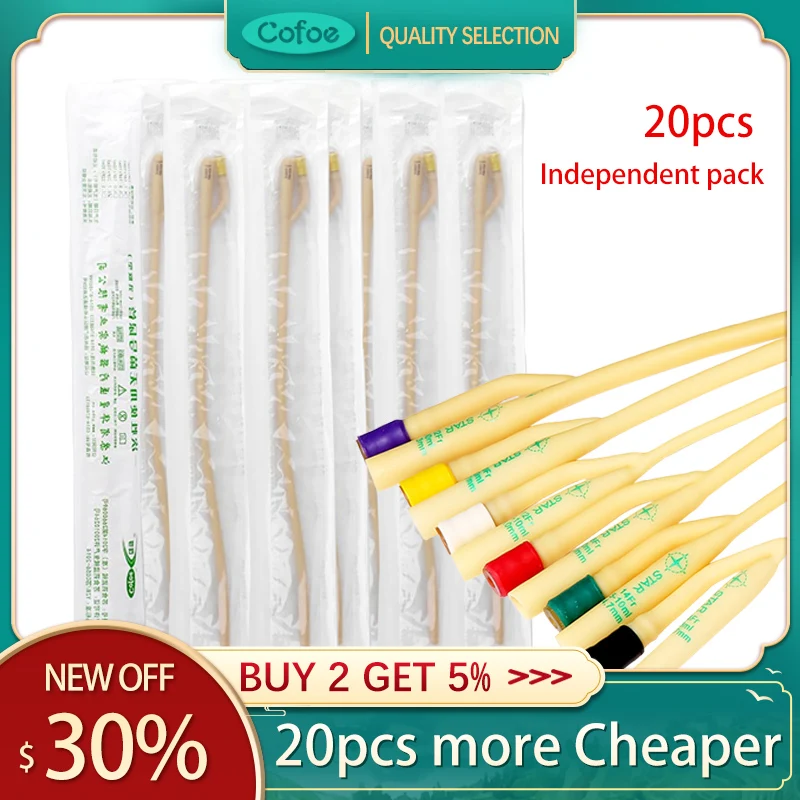 Одноразовый мочевой катетер Cofoe 20 шт., медицинская стерилизация, двусторонний латексный катетер Foley, катетер для мочи с мягким клапаном