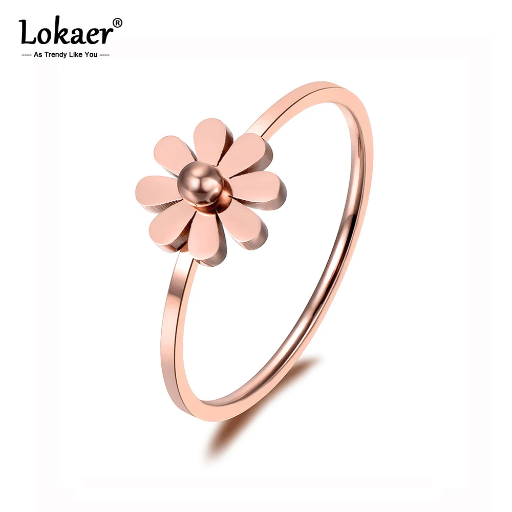 Кольцо для девочек Lokaer, розовое золото, украшение в виде цветка маргаритки, подарок на Рождество и новый год, R18138