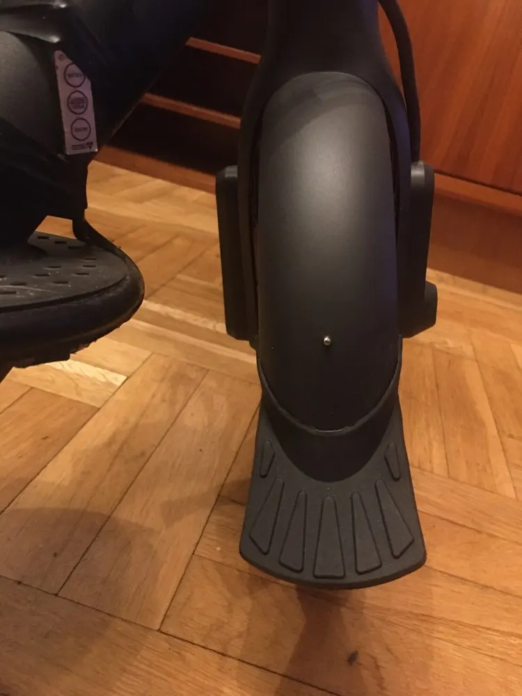 Приделал на заднее крыло Ninebot. Чуть подрезал, чтобы лучше сел и не очень искривлялся (всё таки форма не идеально подходит) и закрепил саморезом.