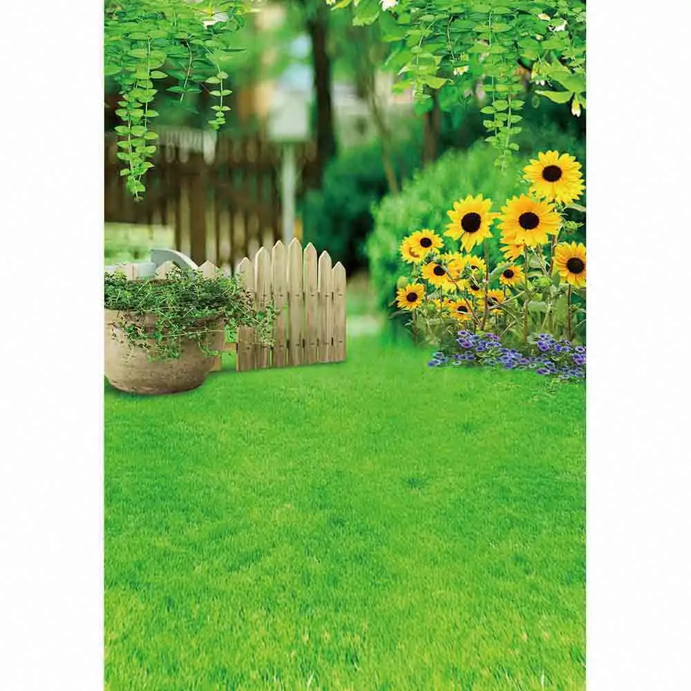 Фотофон Funnytree с изображением весеннего двора, забор на лужайке,...
