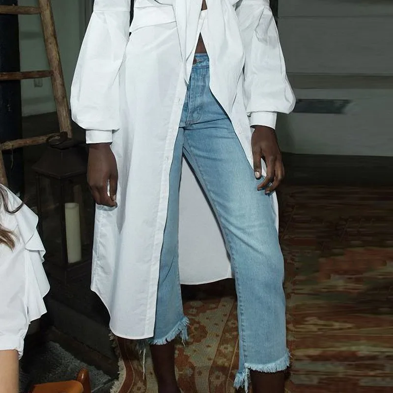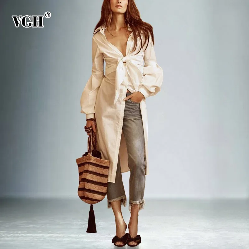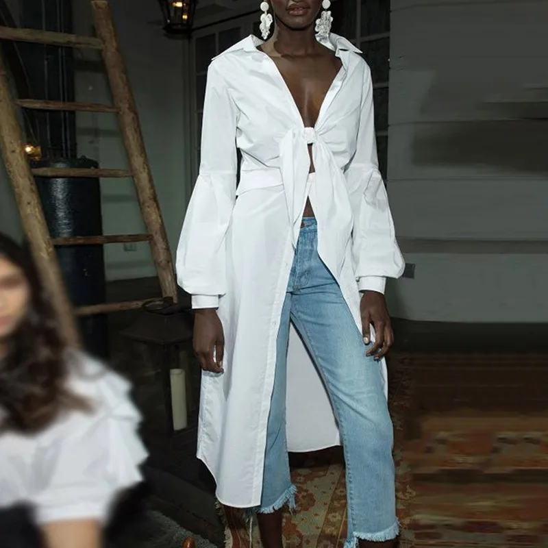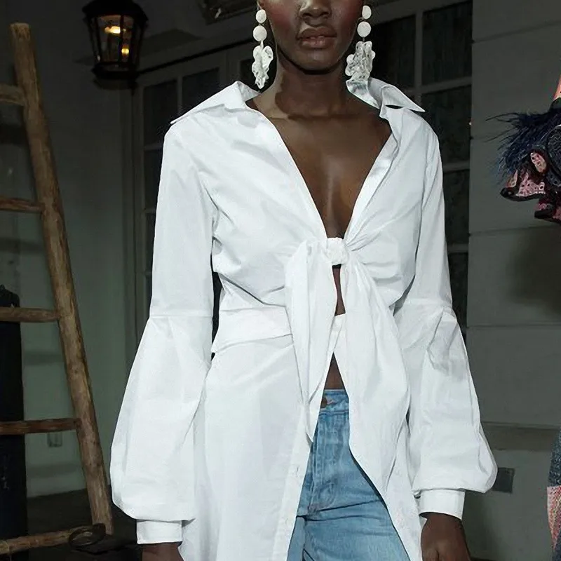 VGH весенние сексуальные женские рубашки с рукавом-фонариком и бантом, женские блузки, Женская туника на шнуровке с глубоким v-образным вырезом, белая рубашка 2020, модная одежда