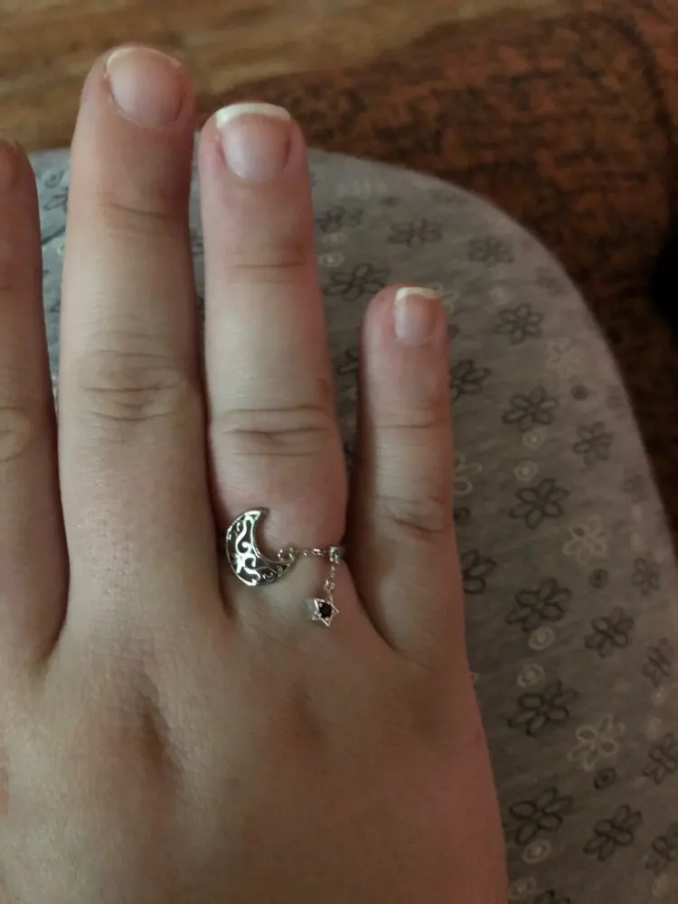 Кольцо очень хорошее, но очень маленький размер, по крайней мере, я думал, что цепочка будет открываться намного больше, поэтому я не использую его на пальце, который я хотел, я надел его на самый маленький