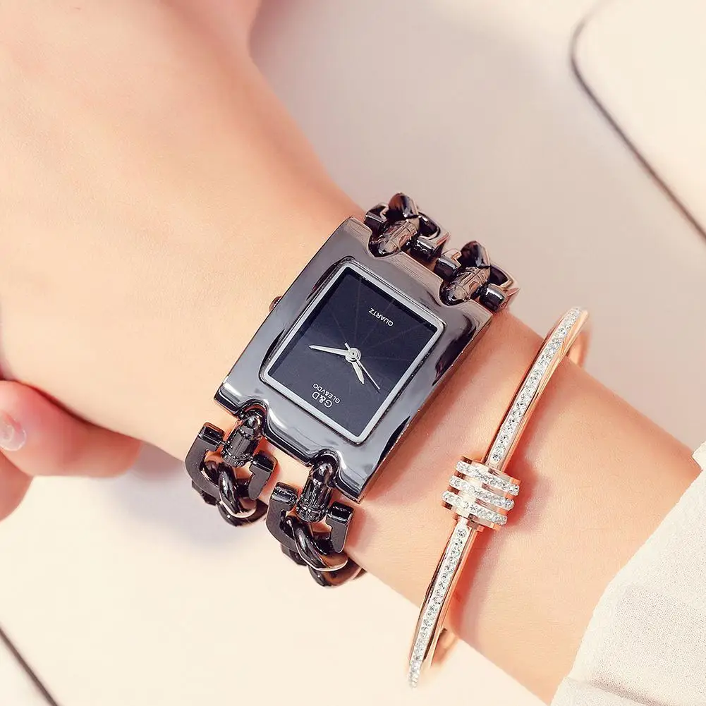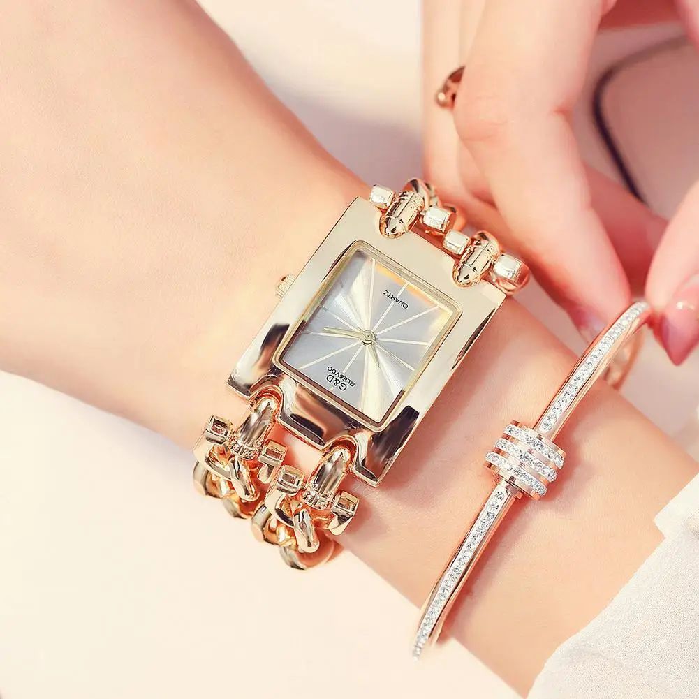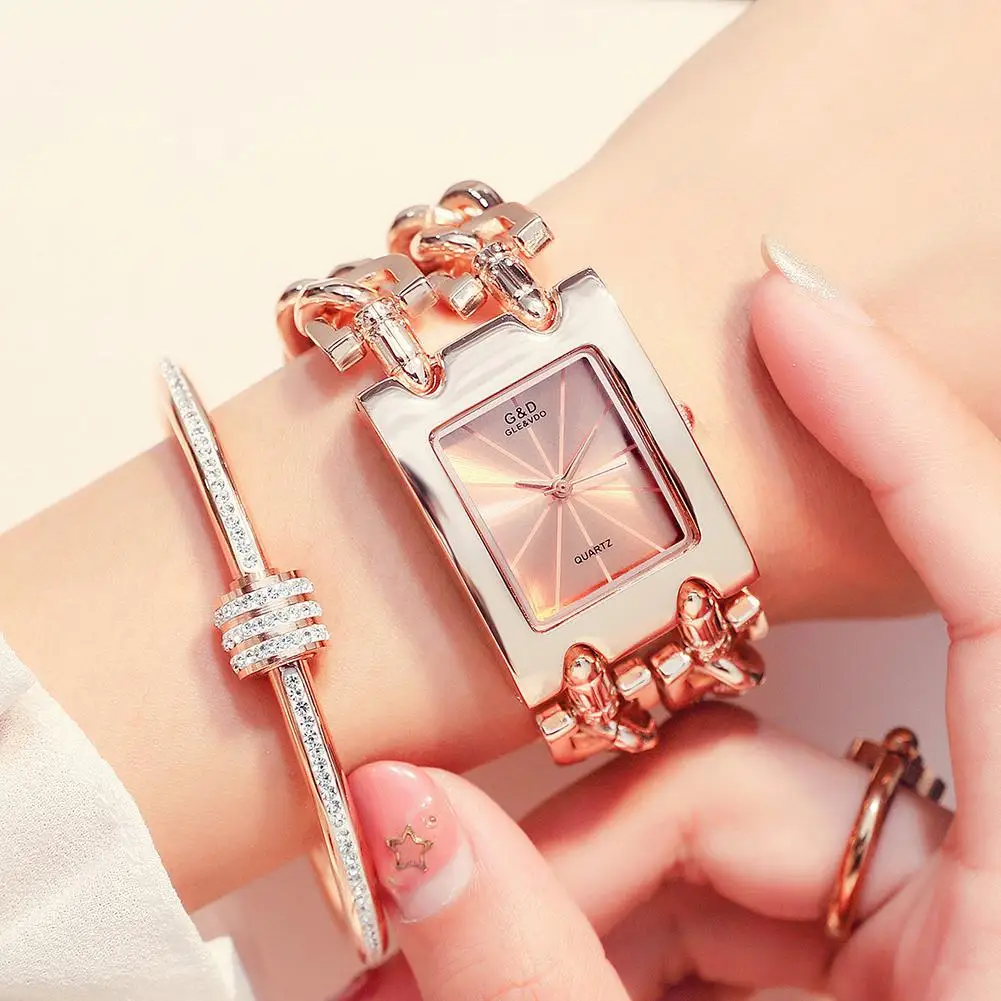 GLE VDO Для женщин женские Аналоговые кварцевые наручные часы класса люкс прямоугольный чехол браслет часы (без цепи)