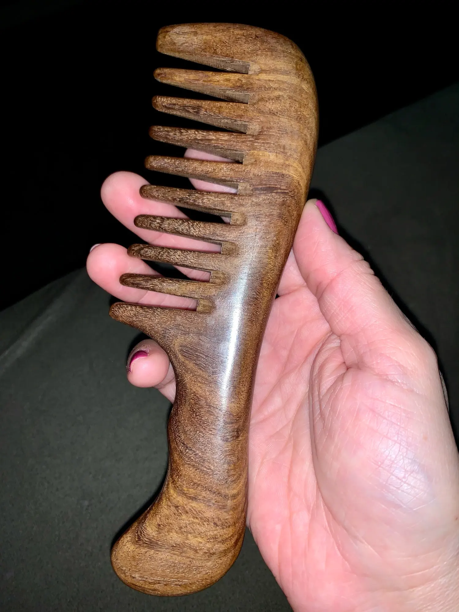 расческа для длинных волос вполне подходит. не электризуется. дерево сандал или нет - так и не поняла, запаха нет ВООБЩЕ НИКАКОГО! даже при нагревании зажигалкой. Не загорелось, но и не стало плавиться, как пластик. В целом расческой довольна, рекомендую!