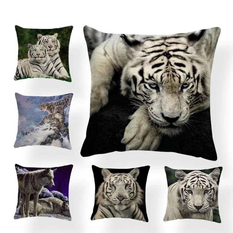Величественная Красивая наволочка с животным белым тигром, снежным леопардом, диван, украшение, подушка, набор, Волчья сова, полиэстер, льняная подушка, черная трава, коричневая пепельная древесина, птица, порошок
