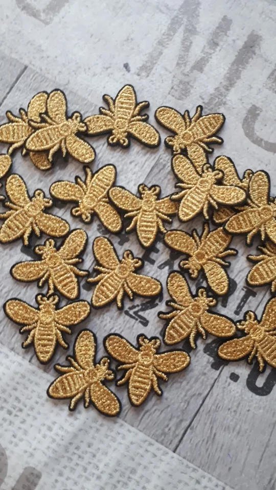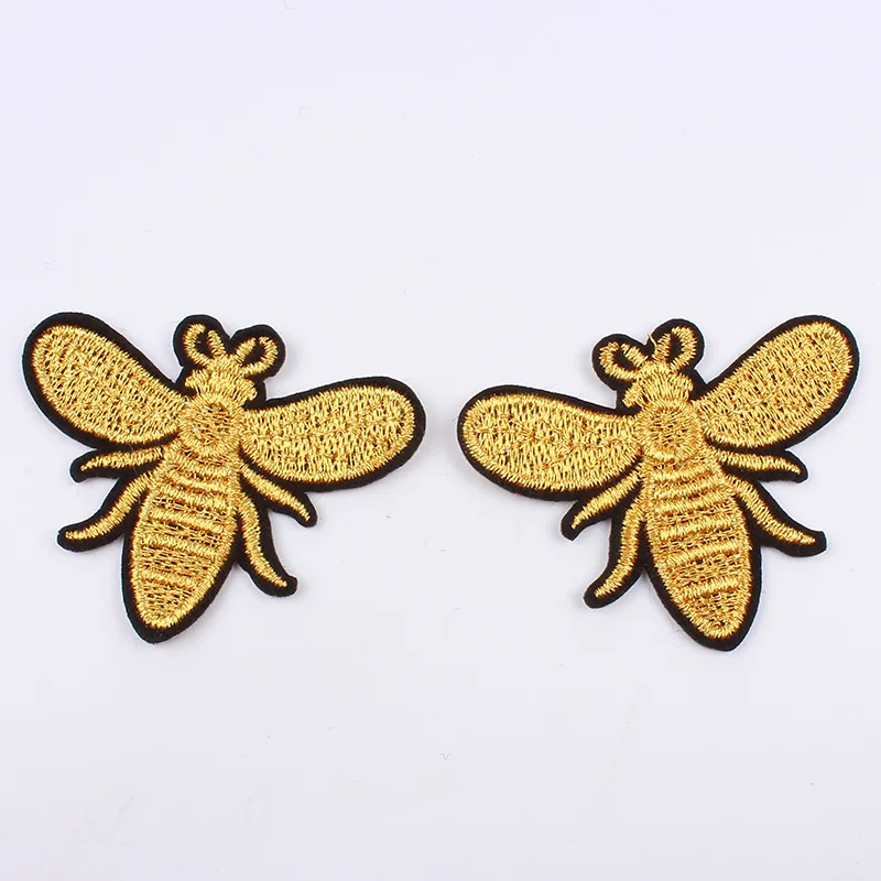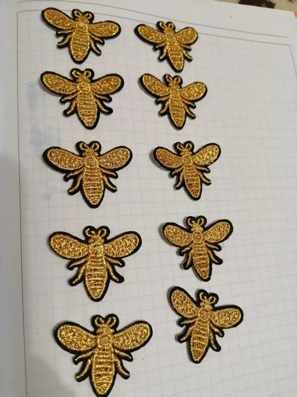 10 шт.лот Вышивка Золотая Серебряная пчела нашивка мультфильм насекомое наклейка DIY швейная ткань аппликации ручной работы значки нашивки для одежды