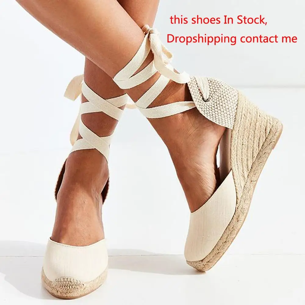 Сандалии женские холщовые с ремешком на щиколотке, эспадрильи, удобные дышащие, льняная пенька, туфли-лодочки, повседневная обувь