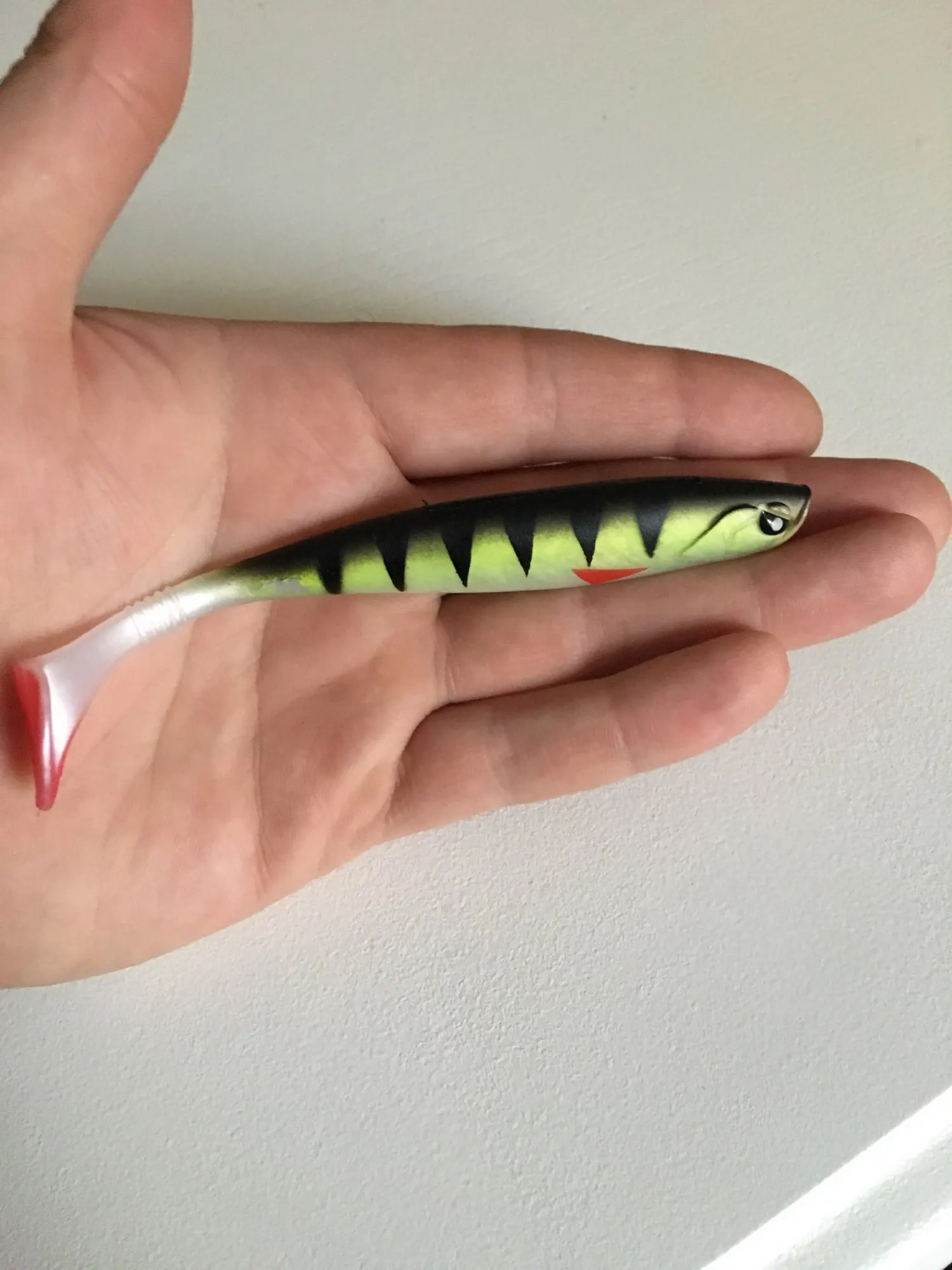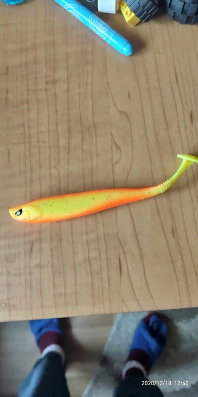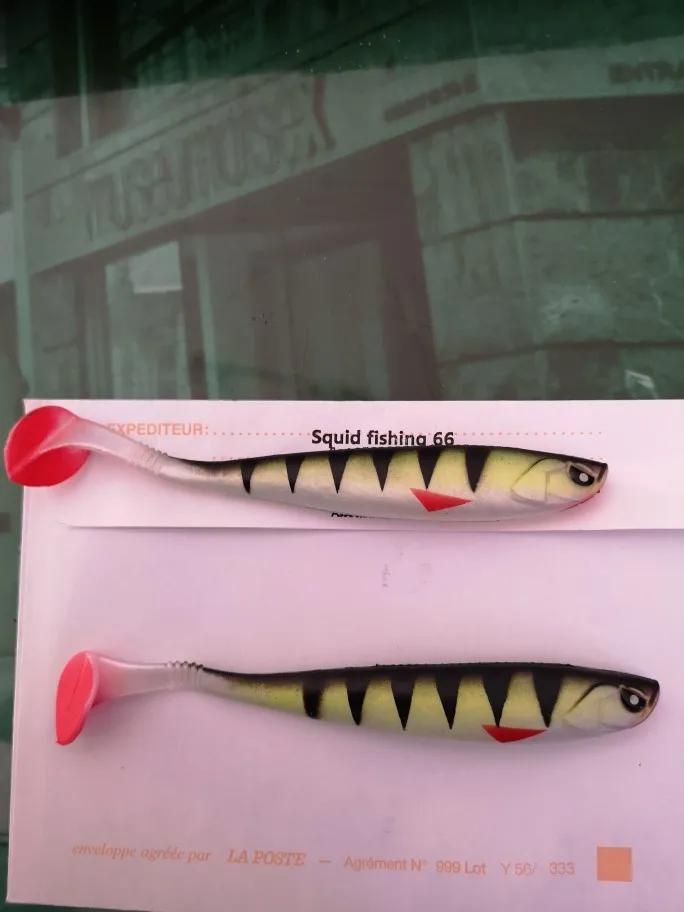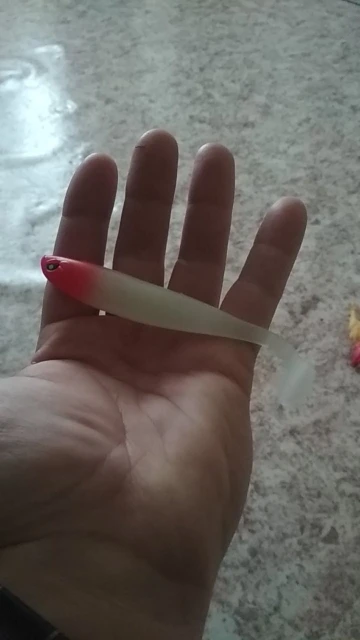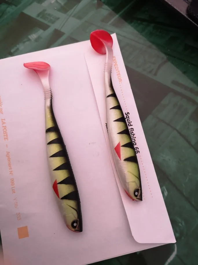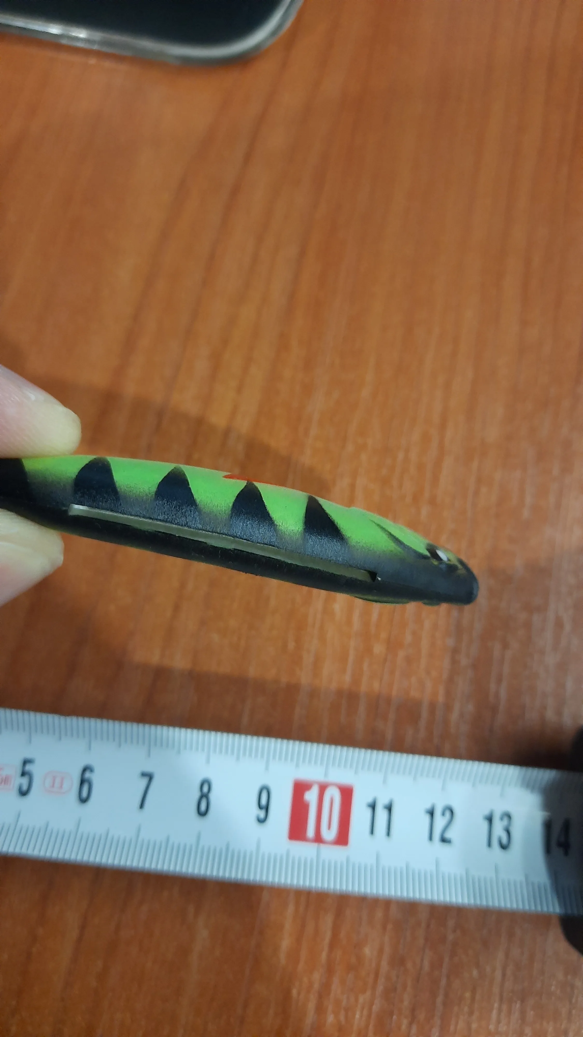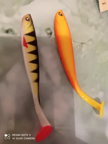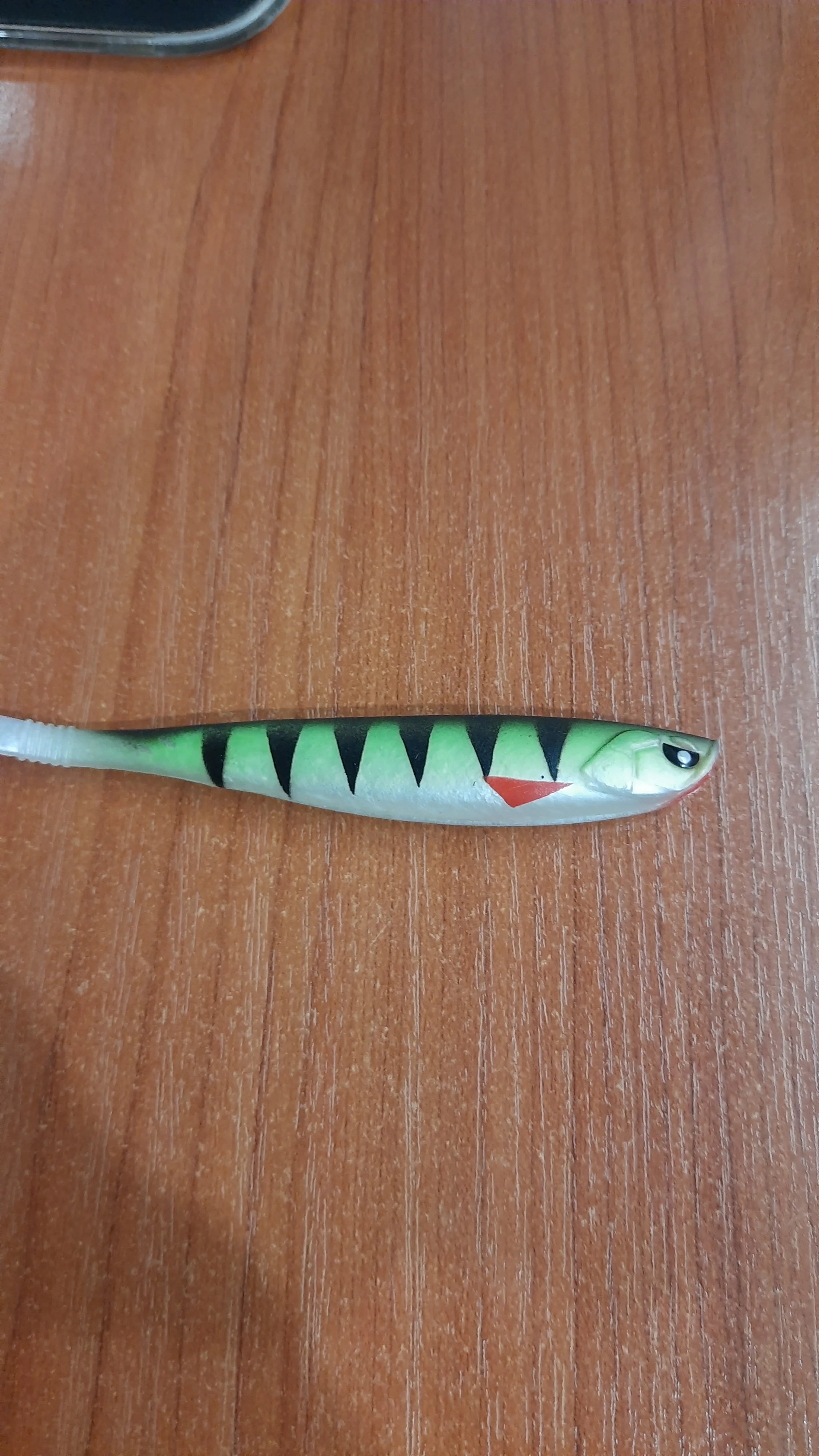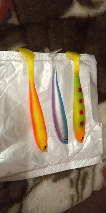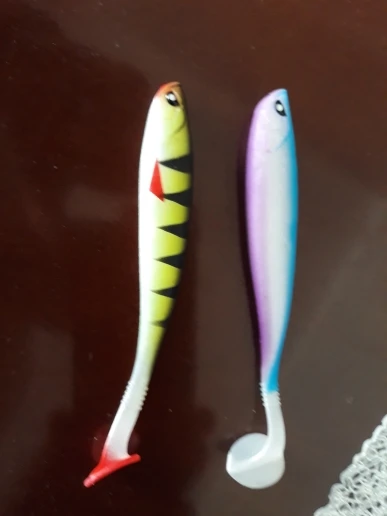Приехали быстро, как в описании, краска прикольная, матовая флорисцентная, есть пазы для офсетного крючка на спине и на пузе, жду рыбалку.