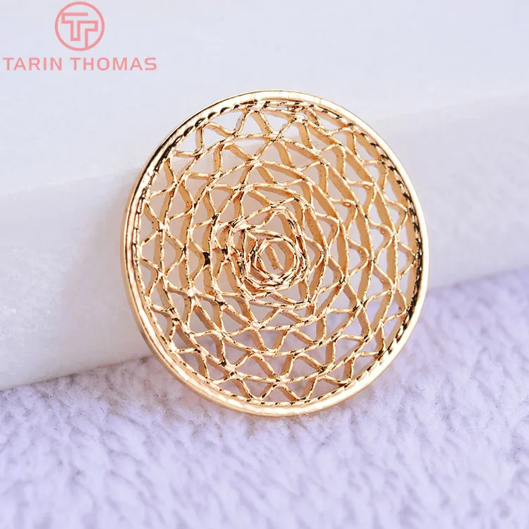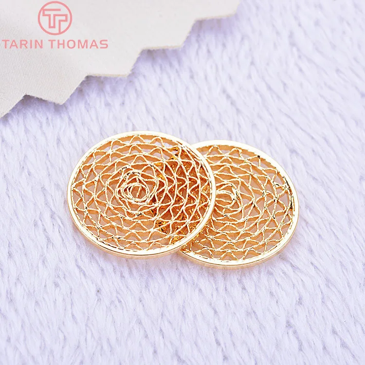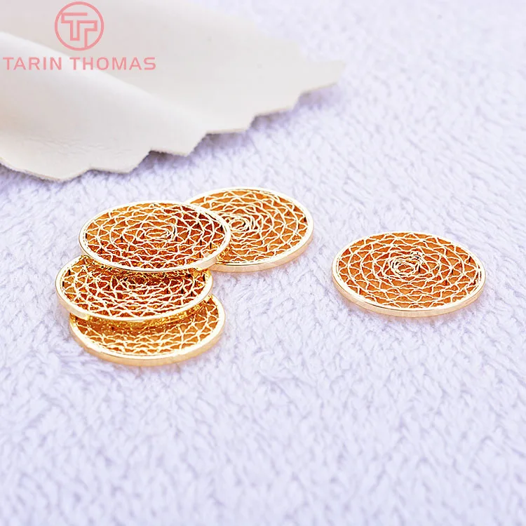 Латунные Круглые Подвески с полым кружевом и покрытием 24-каратным золотом, 4 шт., 15 мм, 20 мм, фурнитура для изготовления ювелирных изделий, аксессуары, (529)