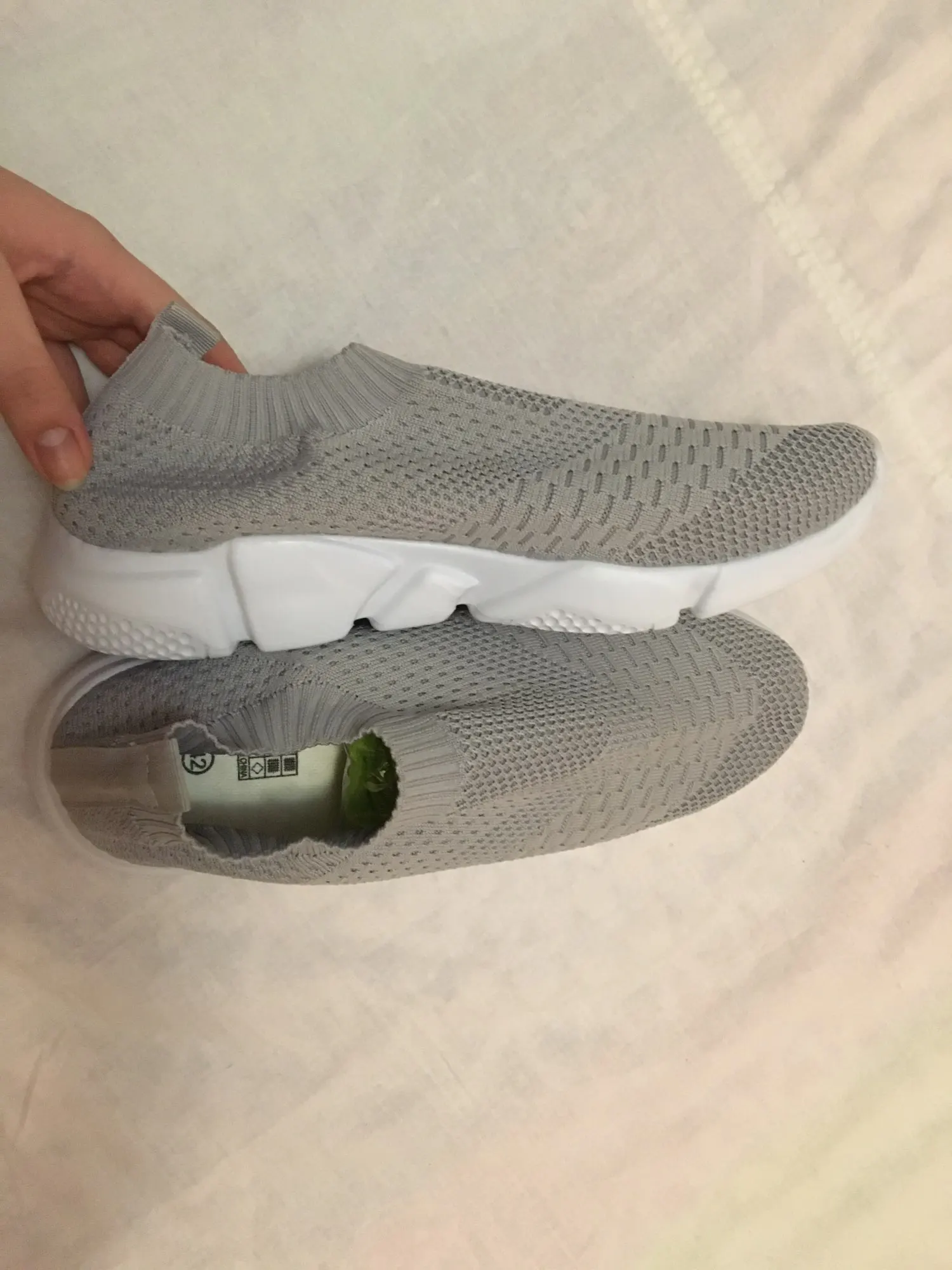 Приехали за 1 месяц в Киев. При открытии упаковки очень сильно пахли химозой какой-то, то ли краской, то ли клеем, но это решается стиркой, никаких проблем. По размеру село хорошо, соответствует европейскому размеру 38, но ноге не ощущаются, очень удобные для повседневной носки.