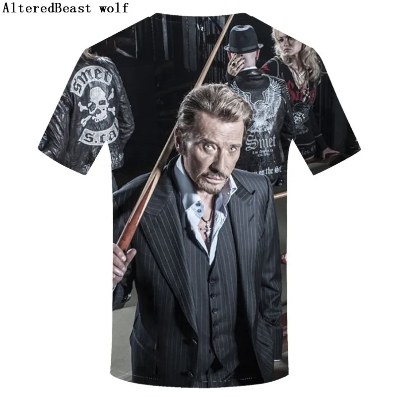 2019 уличная Джонни Холлидей рок-звезды 3d топы, футболки для продажи Для мужчин короткий рукав Футболка с вырезом лодочкой, Для мужчин классная забавная футболка