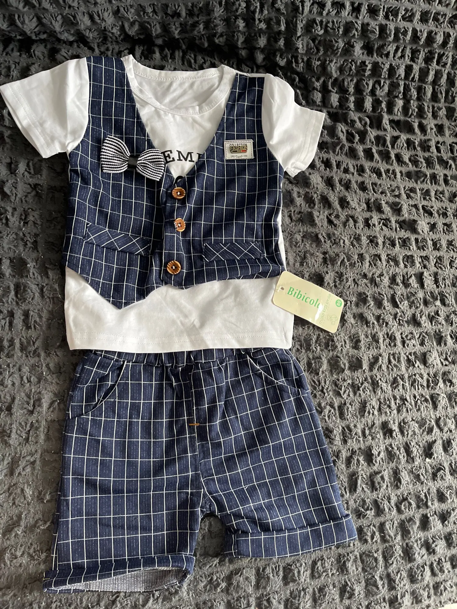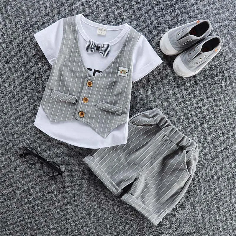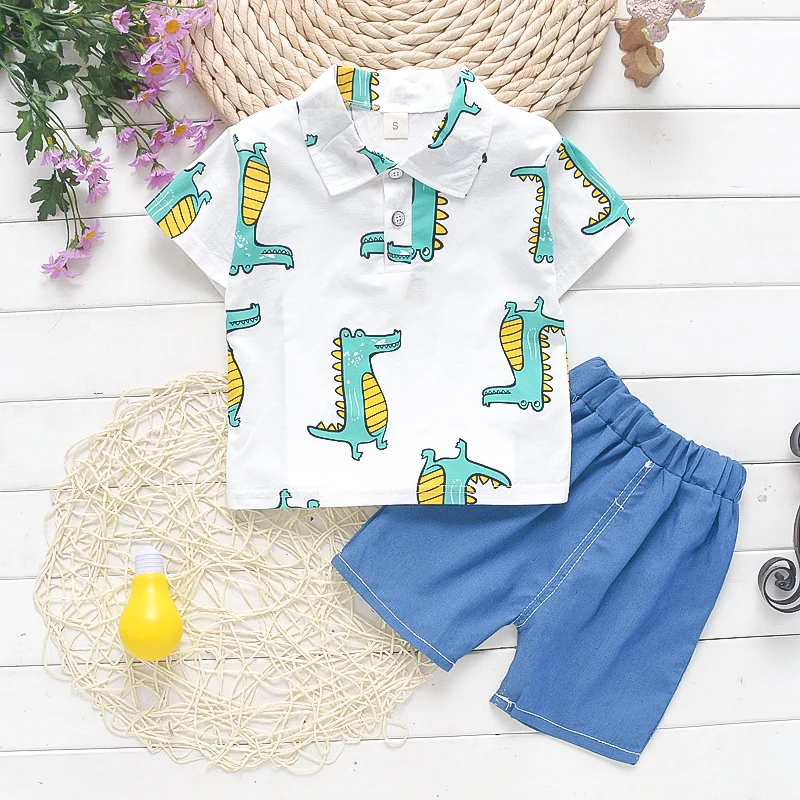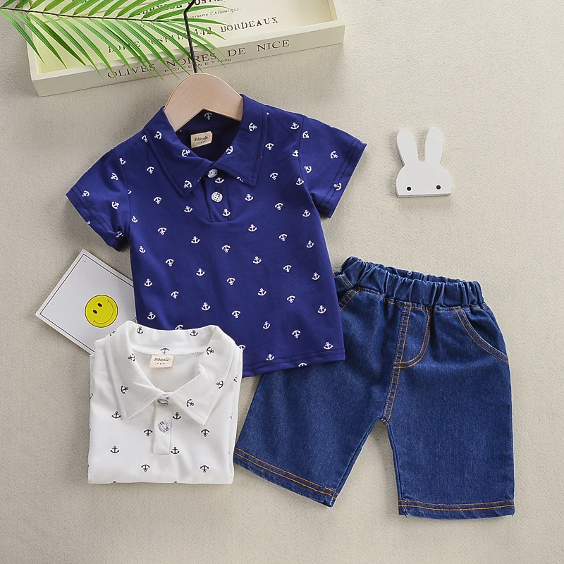 Комплект одежды для мальчиков Bibicola, футболка с коротким рукавом и отложным воротником + шорты, на возраст 1-4 года, летний
