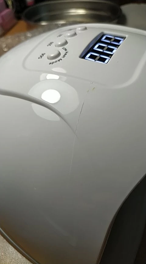 Лампа пришла быстро, к качеству нареканий нет (кроме небольшой трещины на фиолетовом корпусе- странно, что упаковка-норм, а на новой лампе трещина), насчёт диодов и «запекания» ногтей не могу ничего сказать, никак не найду время снова начать ногти делать.