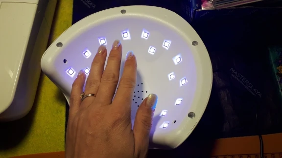 Уф-лампа соответствует описанию, маникюр получился крепкий, сушила по 99сек, для перестраховки, базу, топ и полигель. 2 раза по 99сек сушила цветной гель, с первого раза просушивался не до конца. В целом лампа хорошая, никаких проблем со светодиодами во время сушки не возникало. Доставка в течении 40 дней до Татарстана.