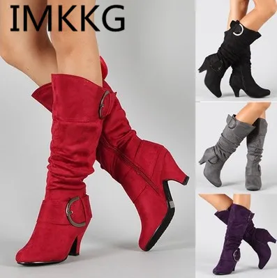 Большие размеры 43; Новые сапоги до колена; Женские осенние модные сапоги из искусственной замши с пряжкой на шпильке; Лидер продаж; Сезон Зима; M441
