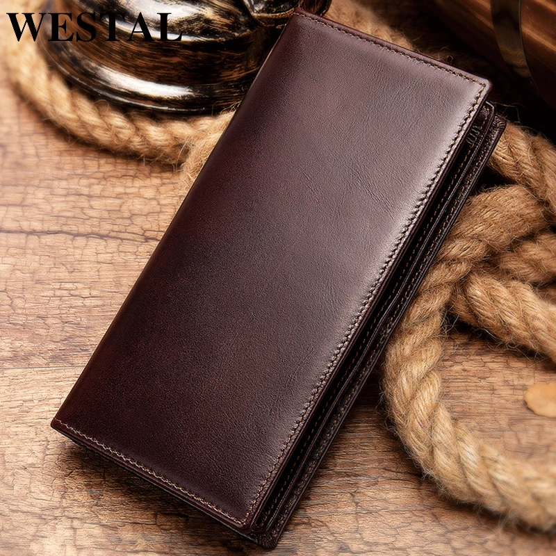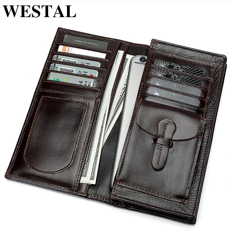 Мужской кошелек WESTAL, из натуральной кожи, с отделением для монет, на молнии, Длинный кошелек для телефона, 100%, 8110