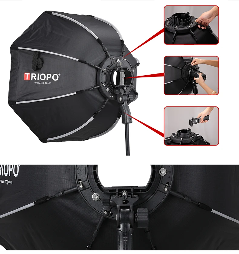 Восьмиугольный софтбокс TRIOPO 65 см с сотовой сеткой для вспышки Godox V860II TT600 TT685 YN560 III IV TR-988