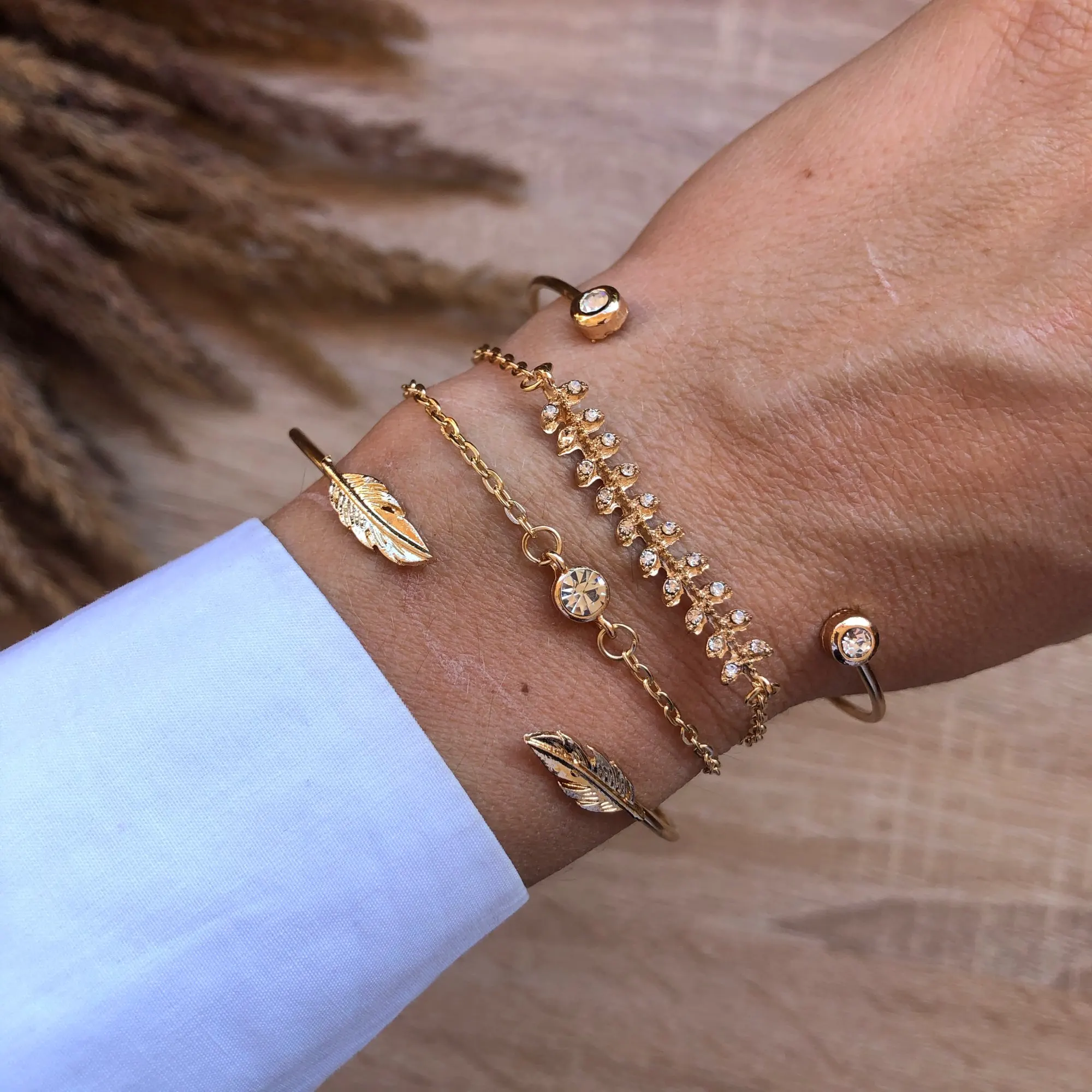 Женская цепочка с листьями, 4 шт.компл., с кристаллами, геометрической формы, набор с золотым браслетом, богемная, с поцелуем жены, Винтажные Украшения, оптовая продажа