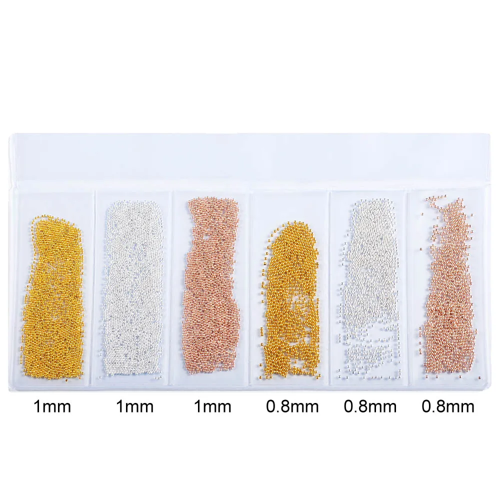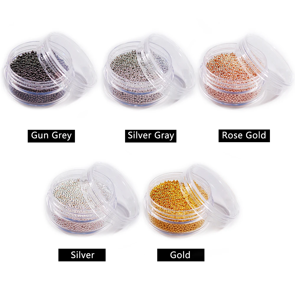 Металлические микро бусины из нержавеющей стали 0,6 мм-1,0 мм Золотыерозовое золотоСеребристыесерые икры сделай сам для дизайна ногтей Типсы для УФ-геля украшения
