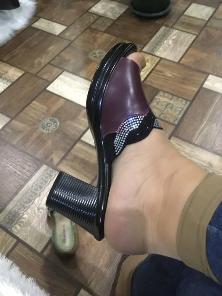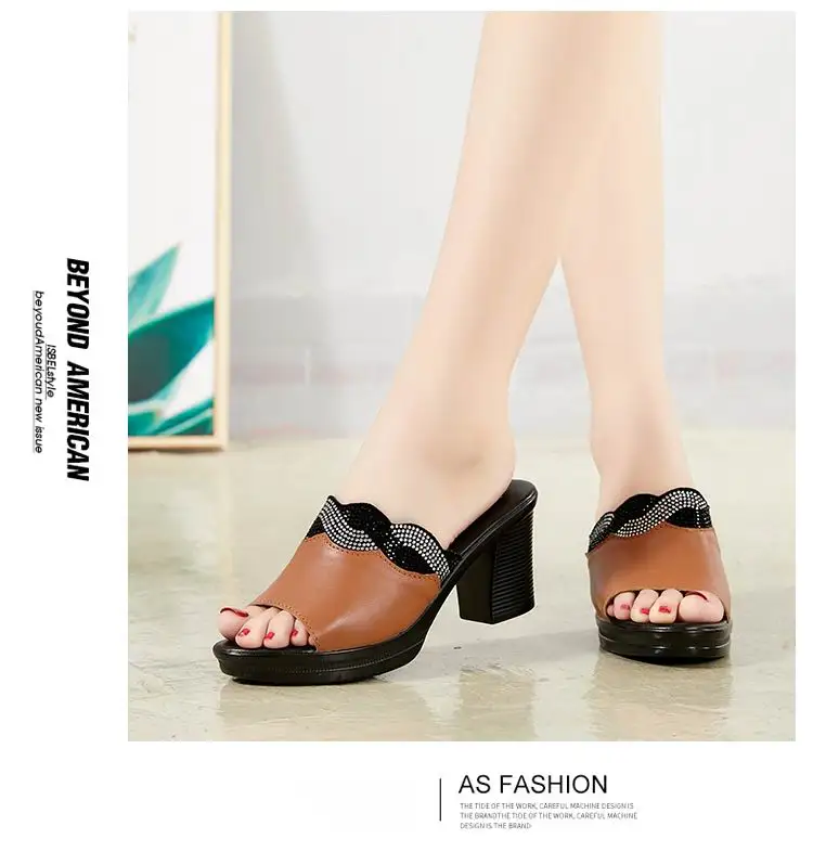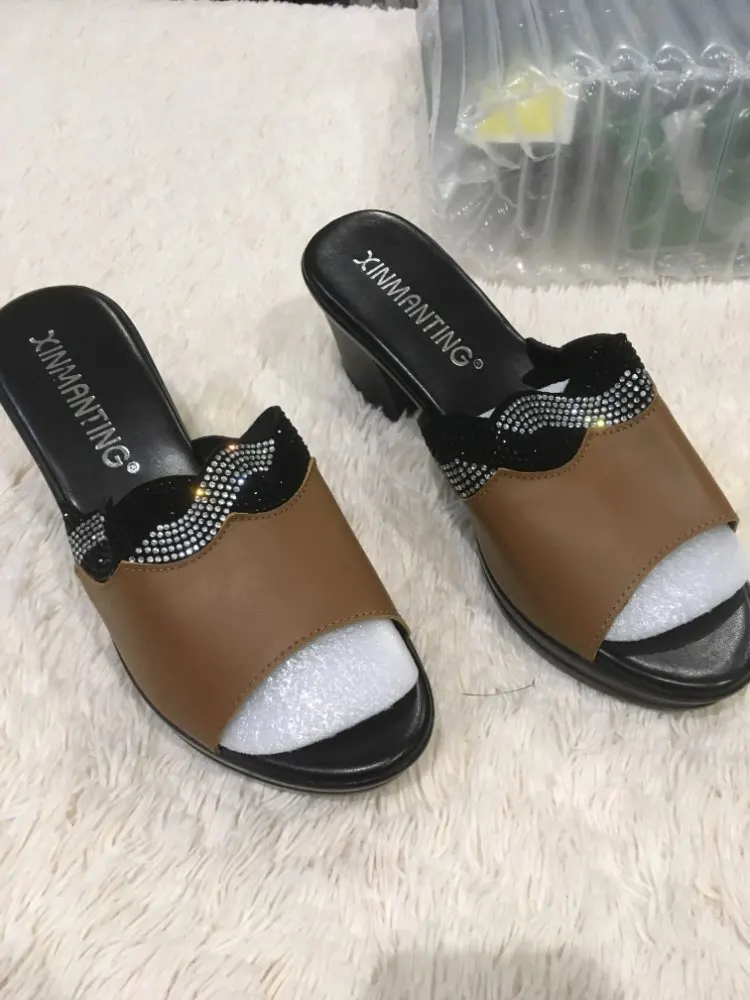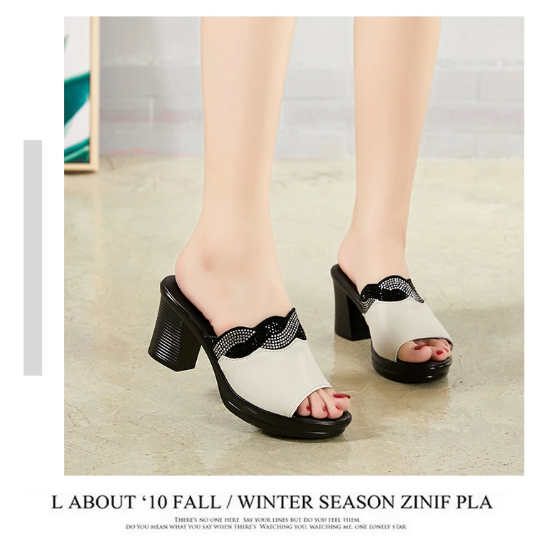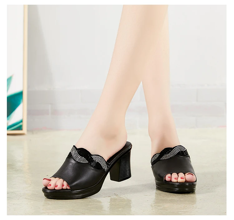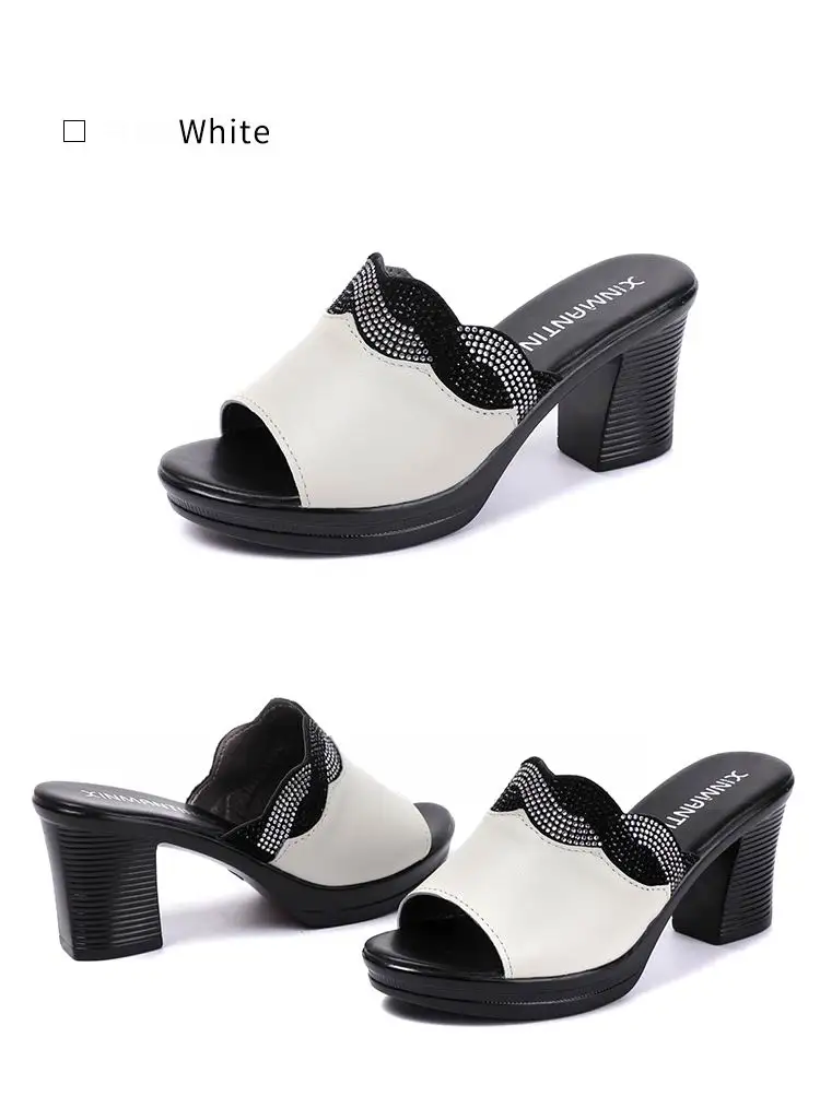 GKTINOO женские тапочки с 2022 дамские летние сандалии для женщин; Женская обувь на высоком каблуке; Модные стразы мужские летние туфли из натуральной кожи