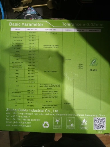 Связался с sunlu из-за того, что нить не работает так, как ожидалось. Они сказали, что они верят, что это плохая партия и предлагают возврат средств. Однако официальная учетная запись sunlu на AliExpress не даст мне его обратно... Избегайте продуктов Sunlu