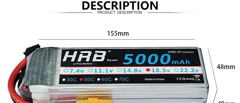 Аккумулятор hrb lipo 4S, 14,8 в, 5000 мАч, 50C, EC5, XT90, XT60, De...