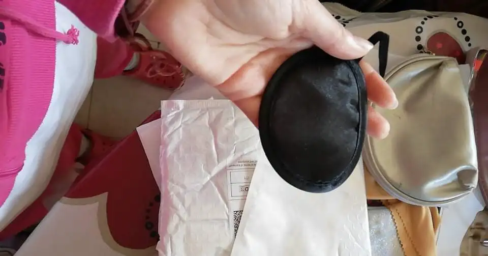 Наглазник хорошего качества, не слишком большой, резинка может немного давить, но это не проблема. До москвы посылка дошла за 16 дней. В неё ещё почему-то положили сеточку для парика, хотя парик я не заказывала