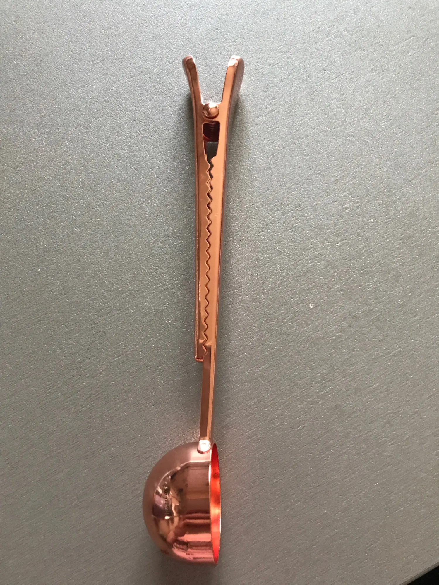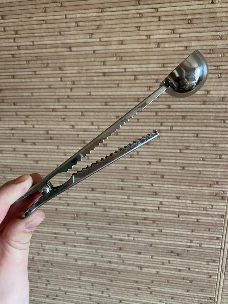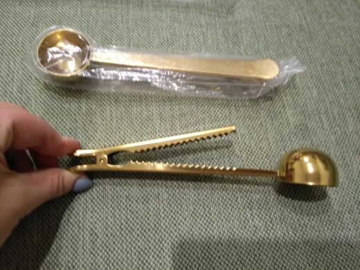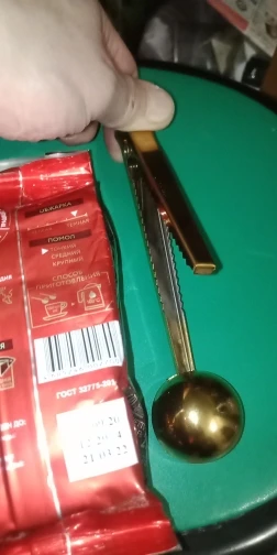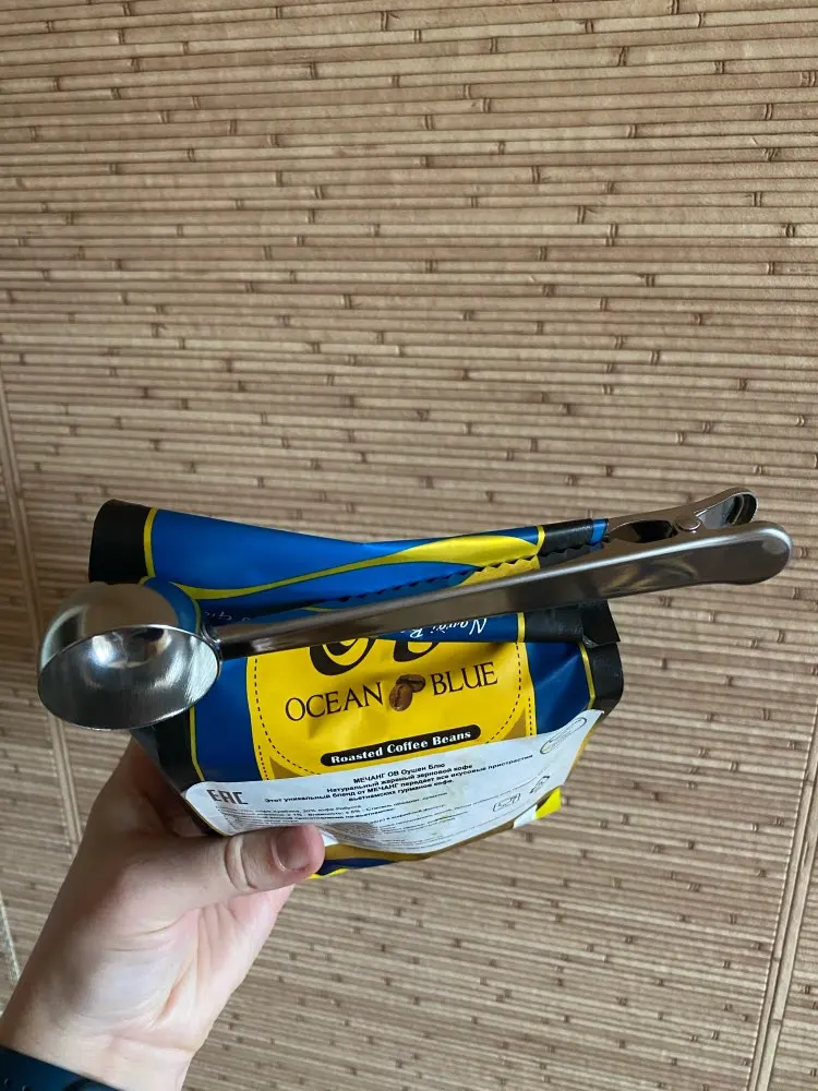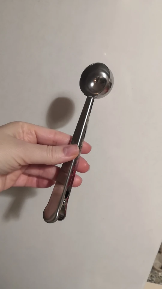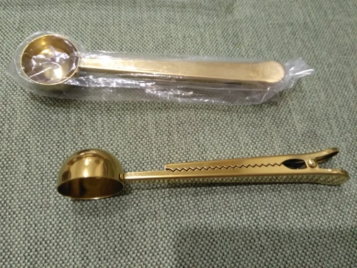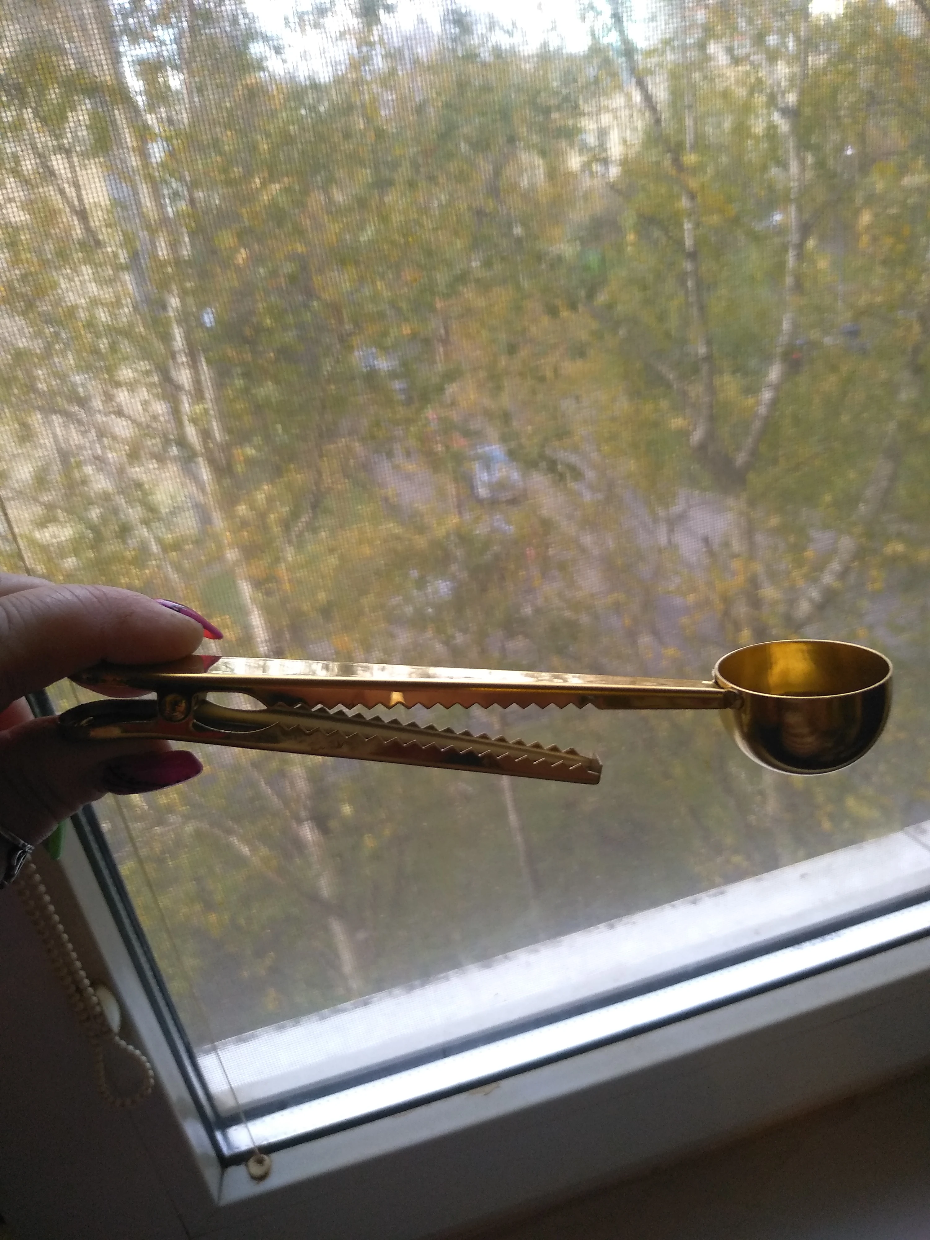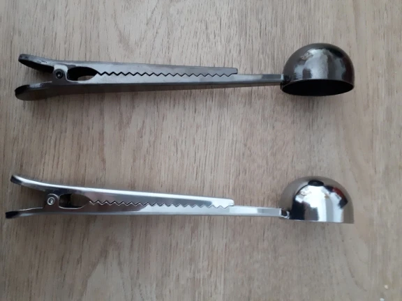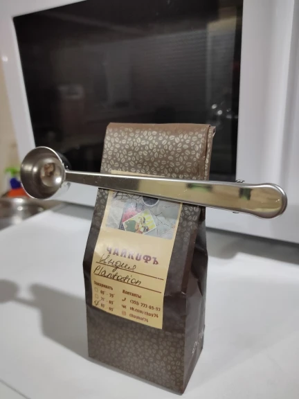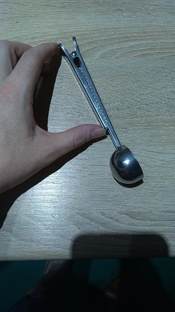 Хорошая, добротная ложка доя насыпания кофе и как зажим хорошо держит.
