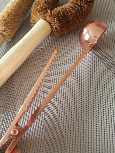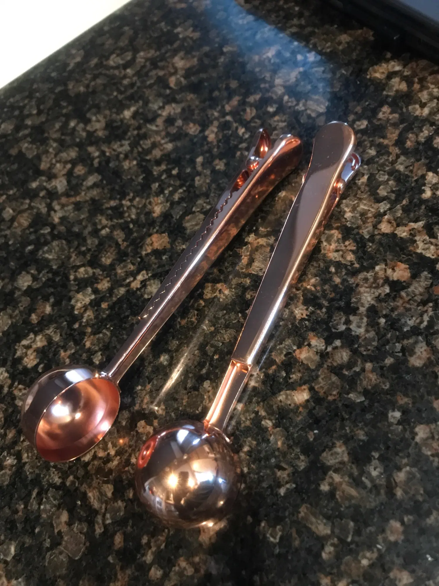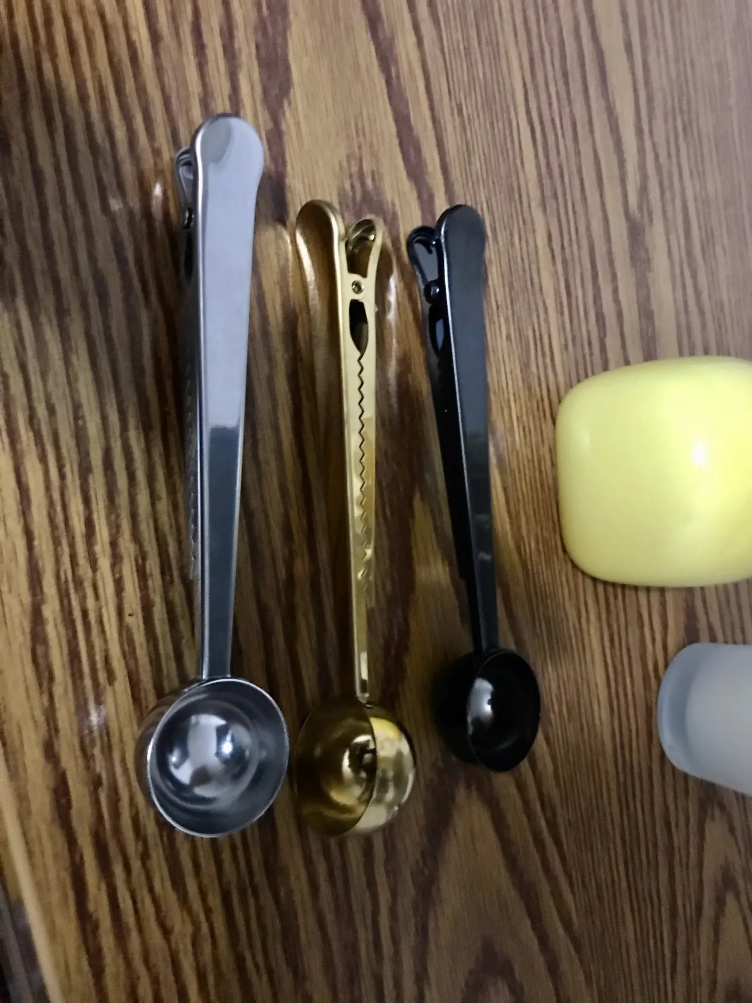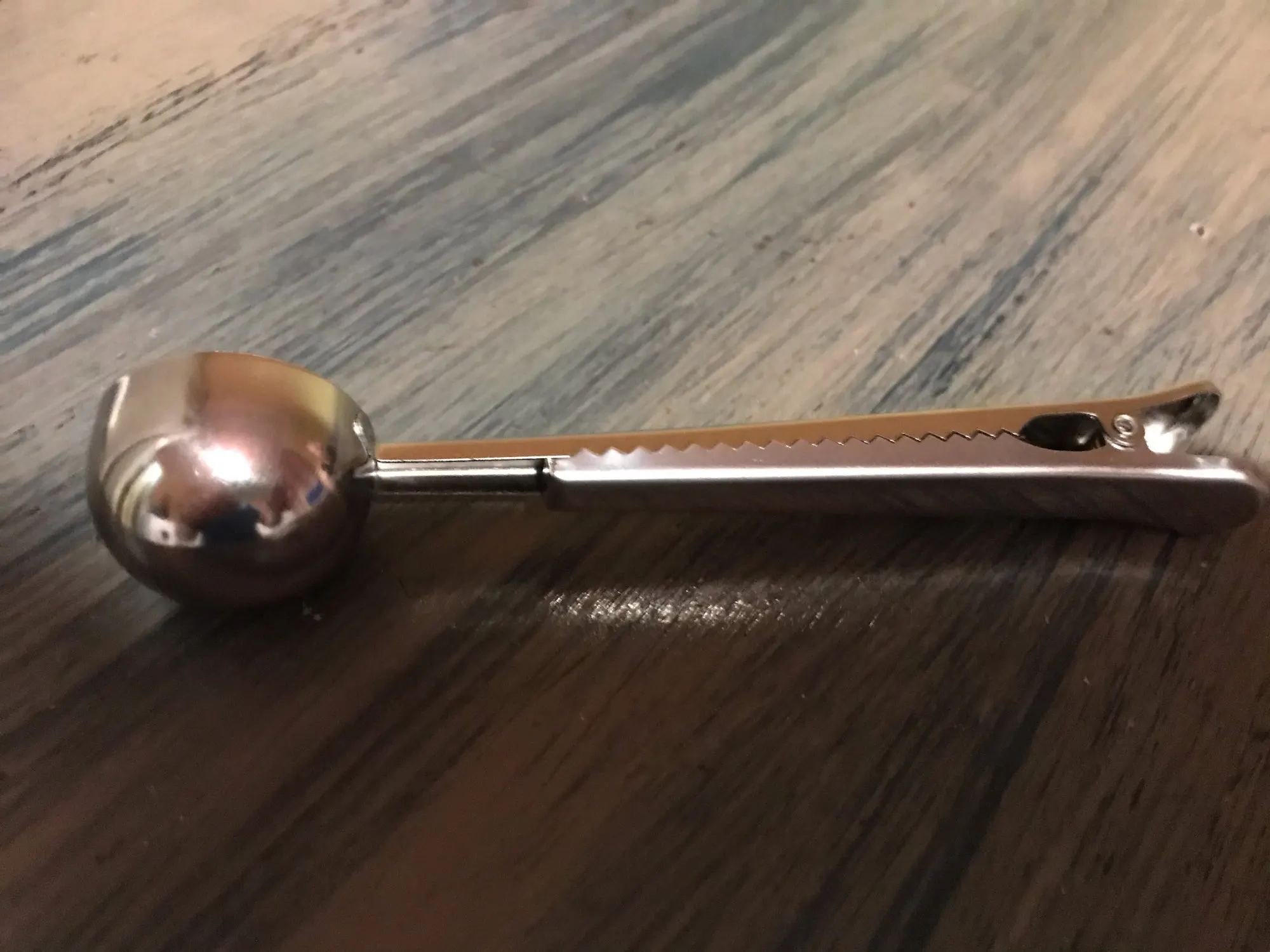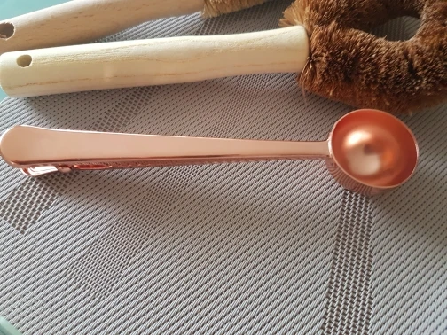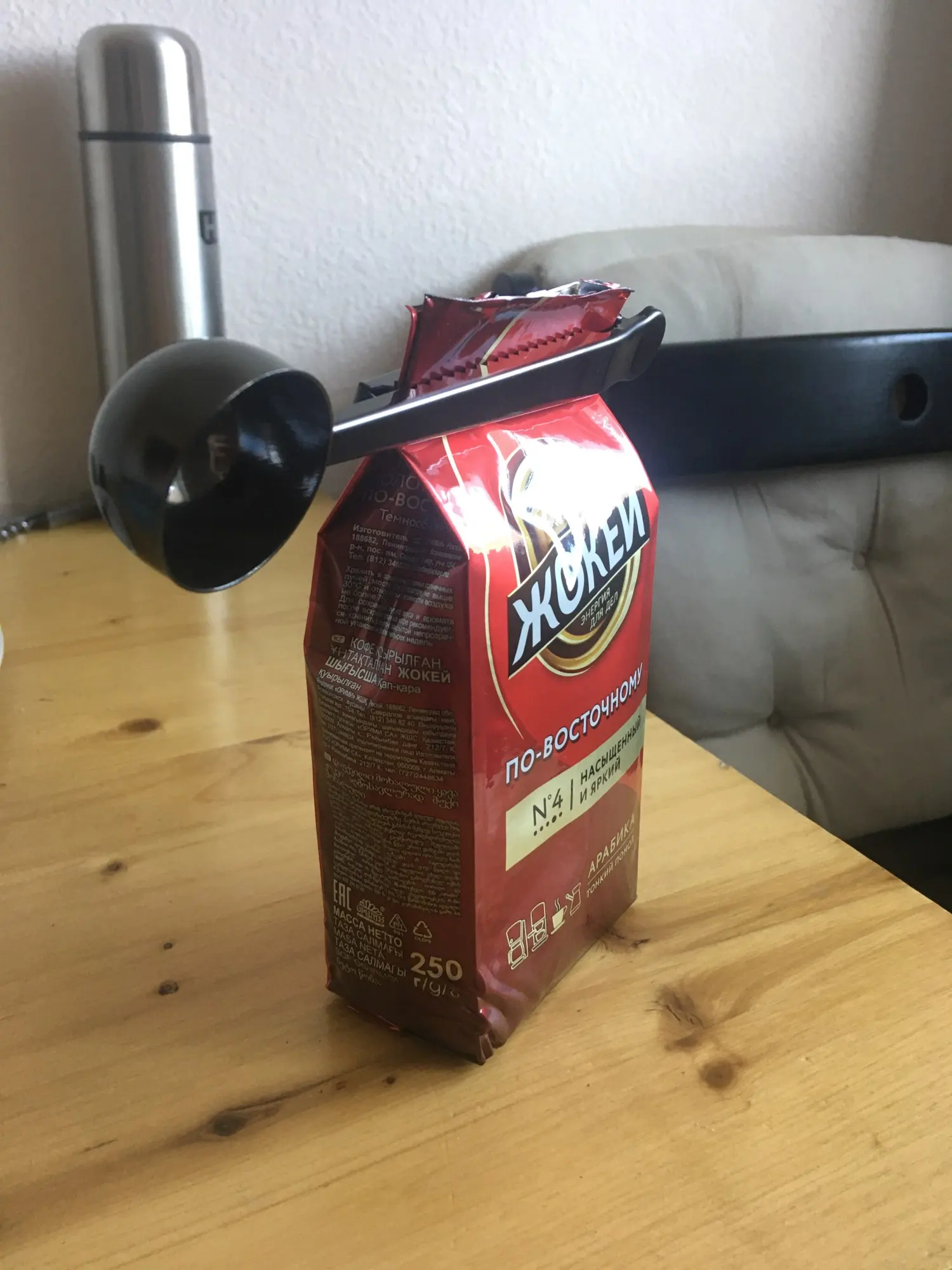 Хорошая, добротная ложка доя насыпания кофе и как зажим хорошо держит.