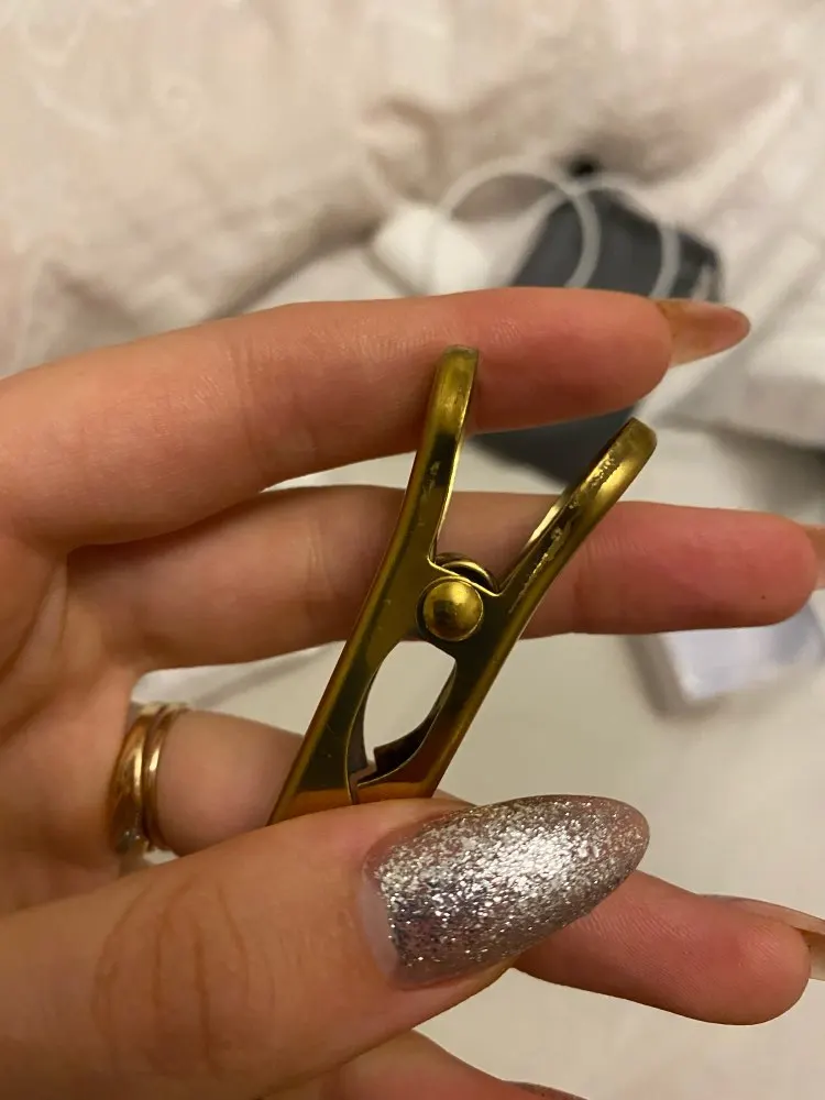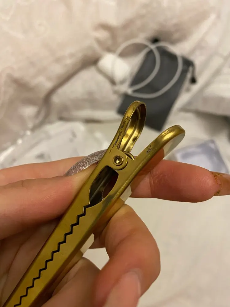получила,всё норм. не обколочена краска,блестит,прищепка крепкая.спасибо.