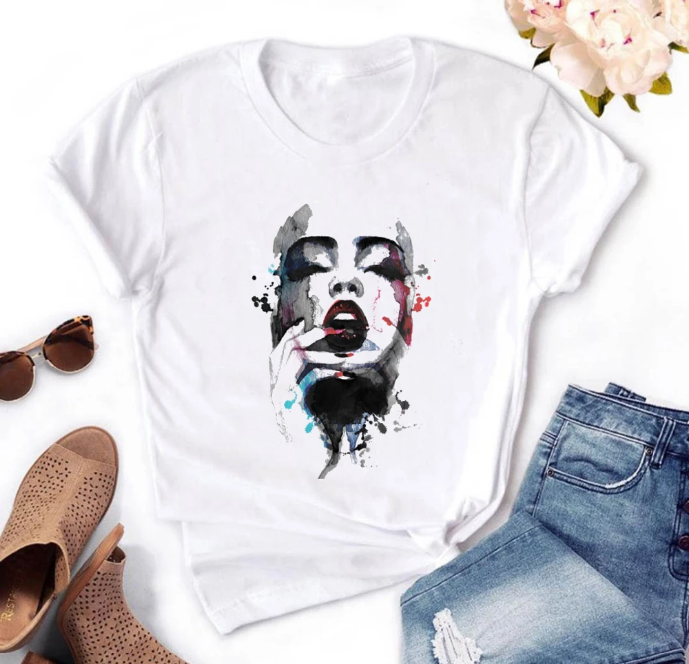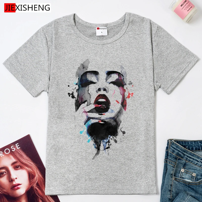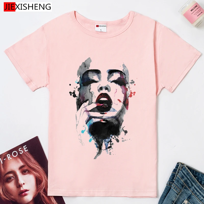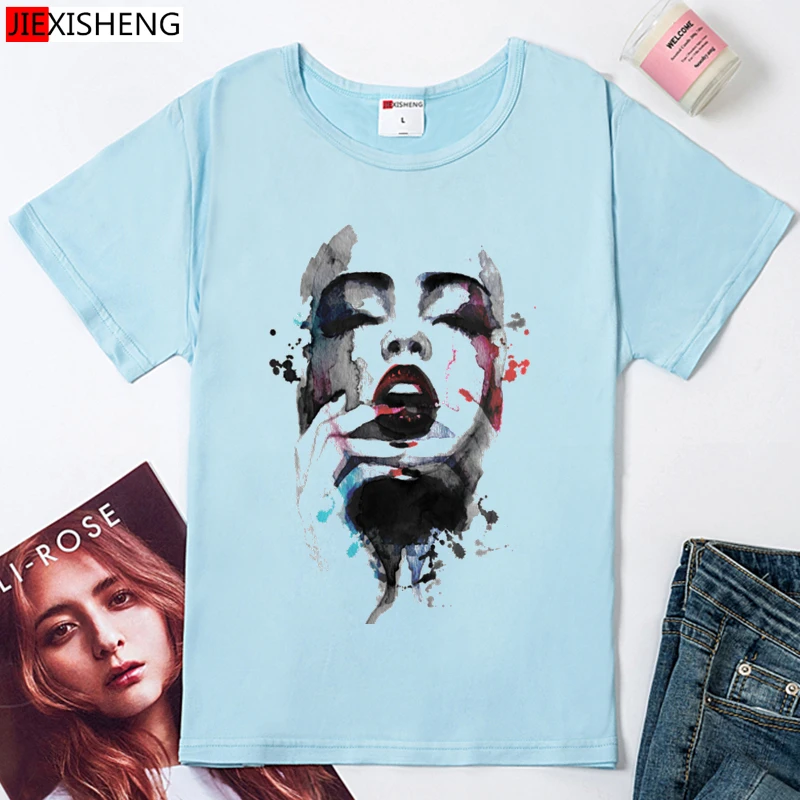 Новейшая женская футболка 2021, повседневные футболки с коротким рукавом и круглым вырезом, футболка с абстрактным портретом и принтом, хипстерские футболки Tumblr