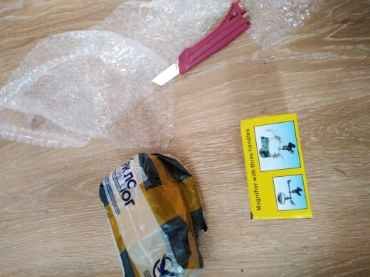 Хорошая штука для мелкой работы. Доставили прямо домой. Всё целое, даже лупа.