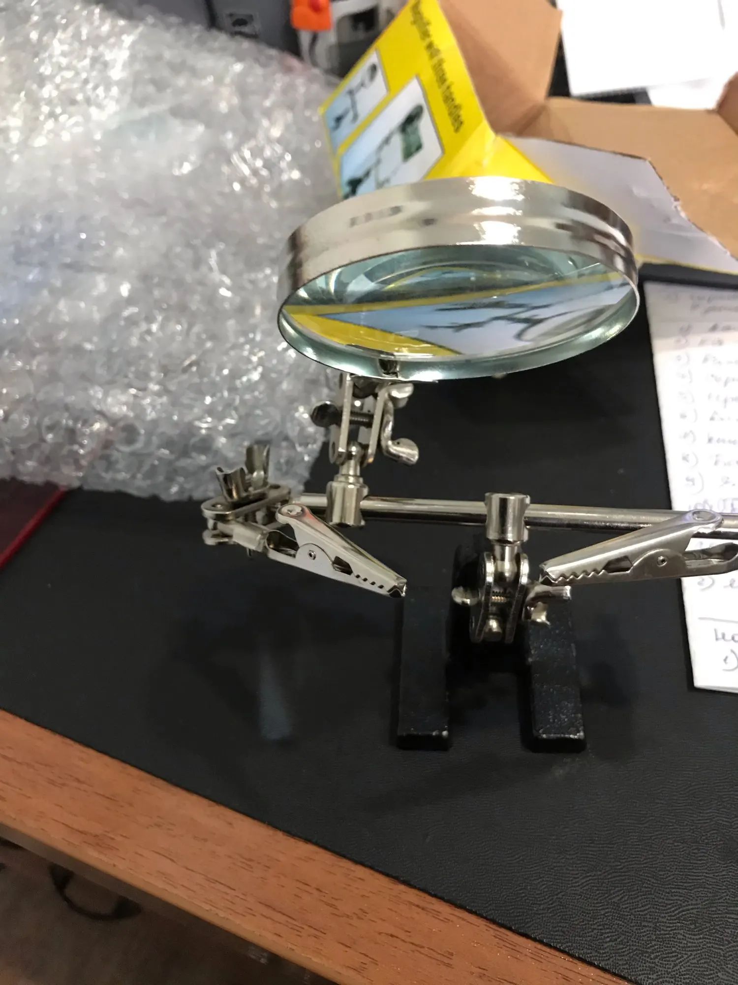 Ехало до мск полтора месяца. В целом хорошая вещь массивная, лупа из стекла, пластины зажимов гнутся, но все позже будет колхозится. Для пайки мелочи спмое то.