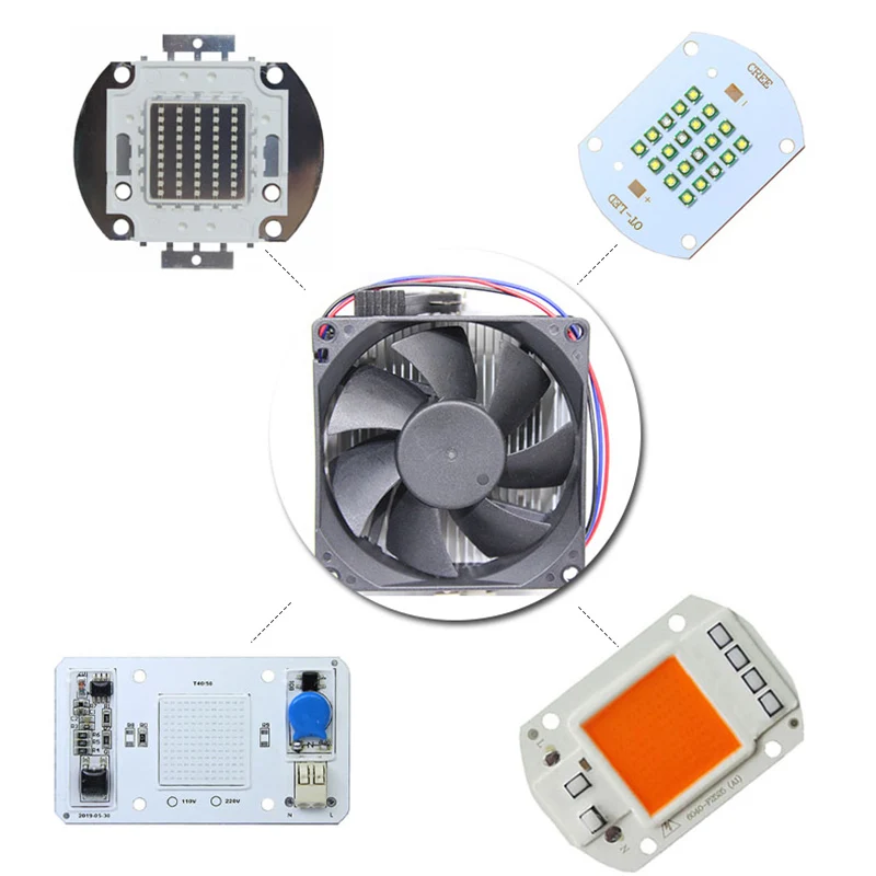 Алюминиевый радиатор с вентилятором 12 В для светодиодов высокой мощности, алюминиевый радиатор, охлаждающий вентилятор для светодиодов 50 Вт, 100 Вт, 1 комплект