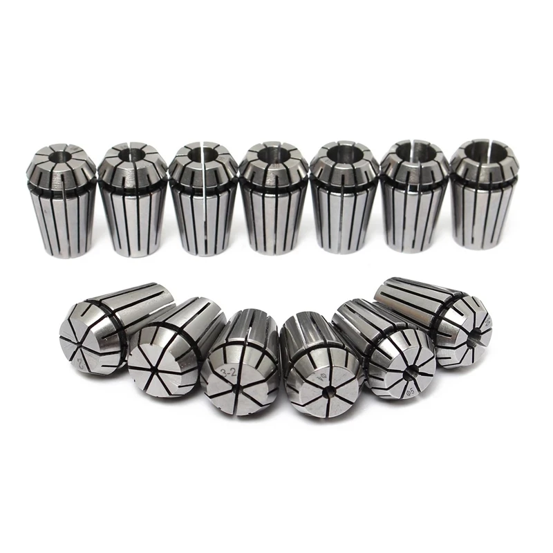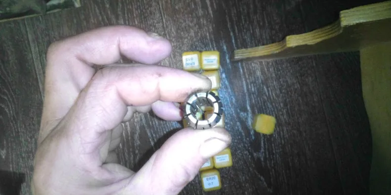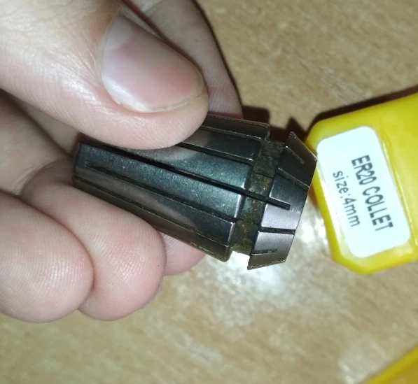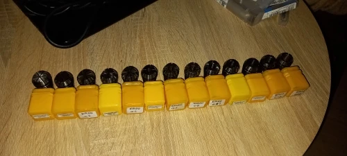 Приехали цанги в Ха быстро, около 2 недель. По качеству на вид - такое... примерное на 15 баксов. Большего ожидать не стоит. Внутри некоторых заусенцы от технических рессорных пропилов. Особенно на 13 диаметре, пришлось даже дорабатывать натфилем. По работе и биению - отпишусь, но надежд не питаю. Если нужны цанги качественные, то смотрите от 50 баксов за комплект. Если нужны для дерева и другой мягкой материальщины то можете брать. 3 диаметр реально 3-2мм и фреза 3.175(1/8") туда не становится. Соответственно в 4-3 фреза 3.175 болтается, так что ищите и заказывайте для этой фрезы дюймовую цангу