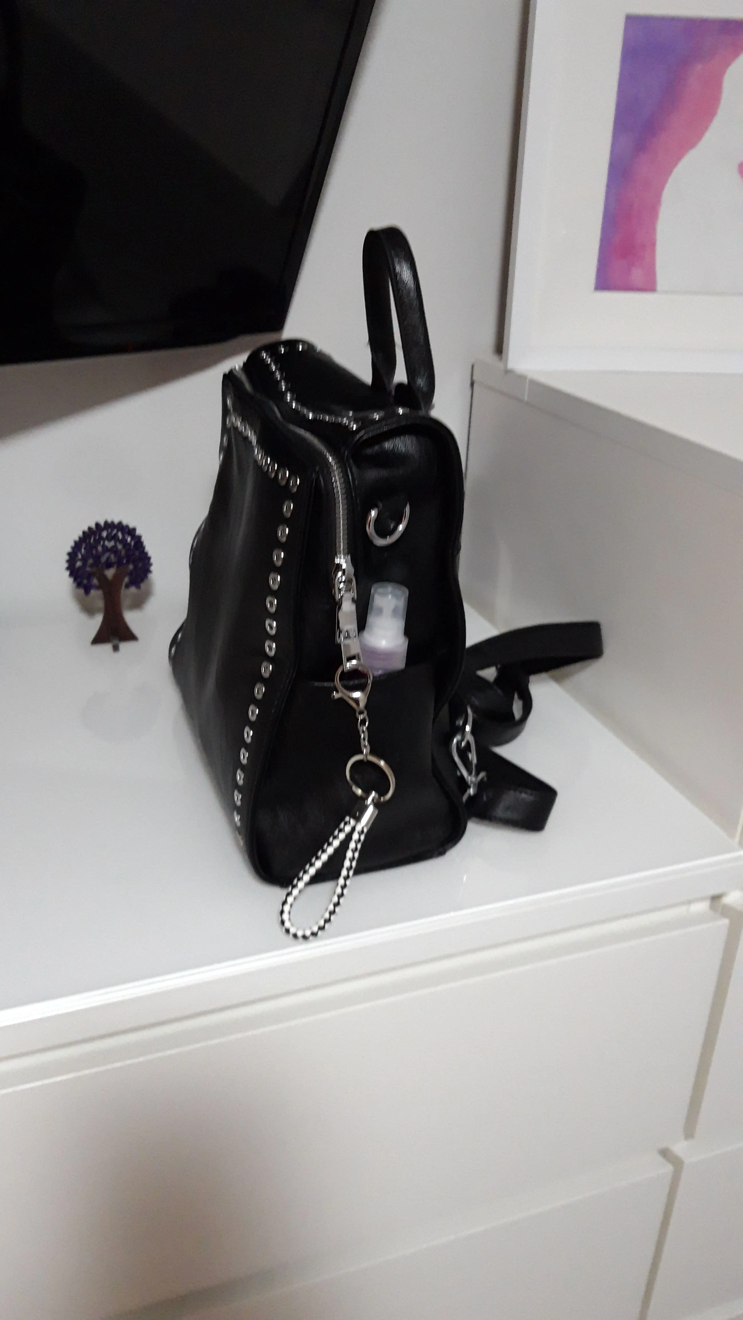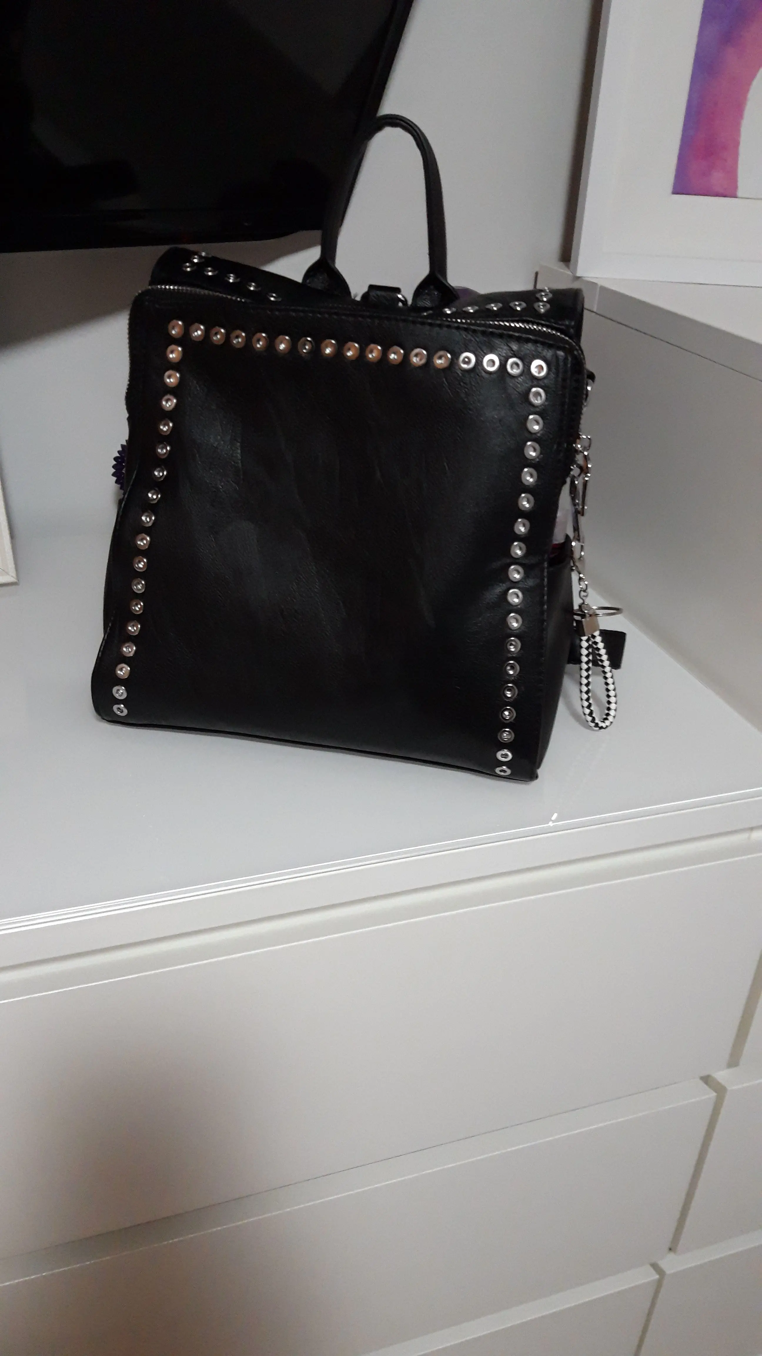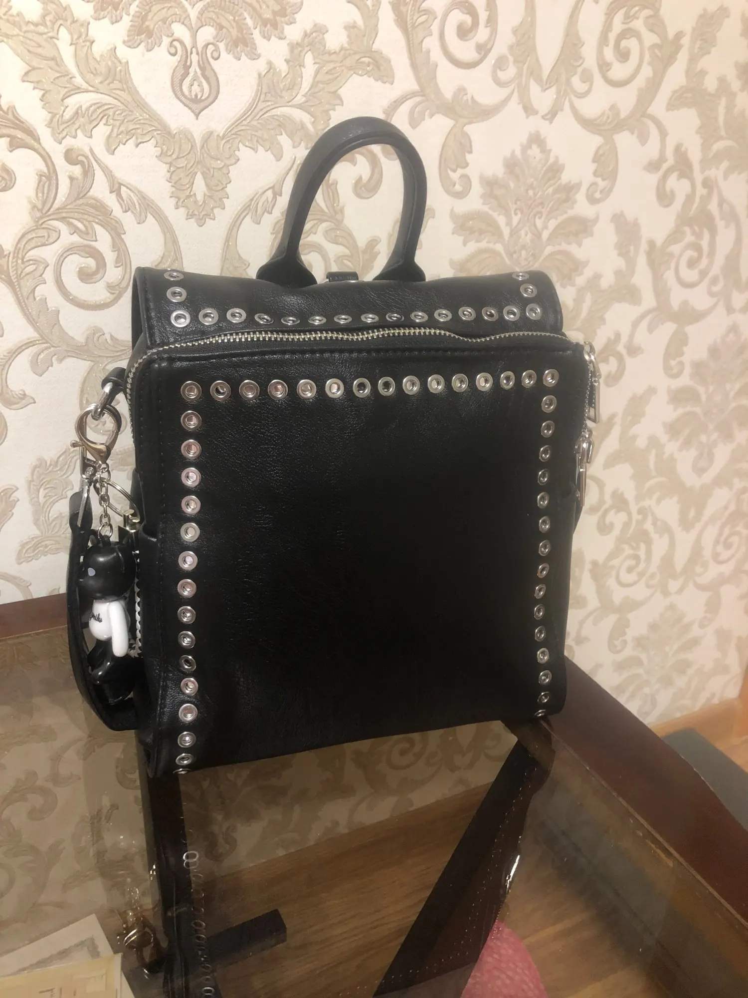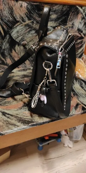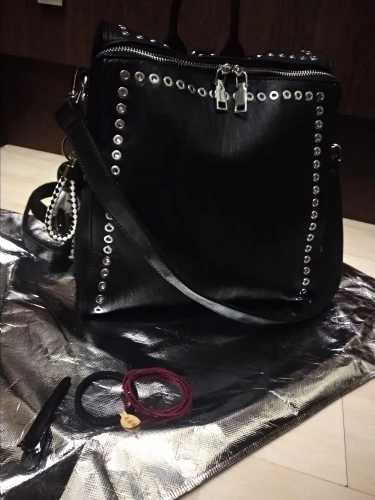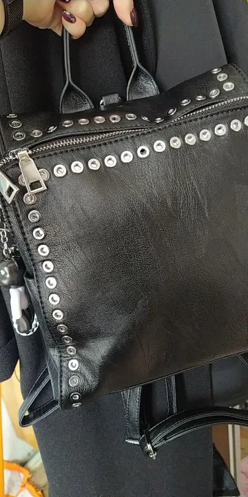 Симпатичная сумочка-рюкзак. Я выбрала маленькую. Очень милая и стильная. Пришла за 2 недели, спасибо продавцу.