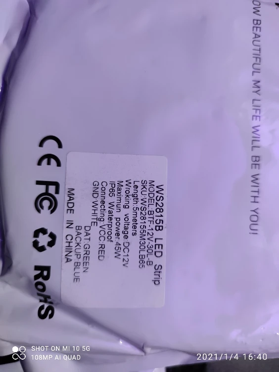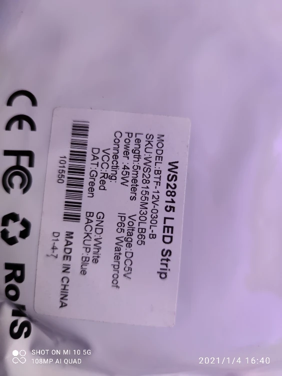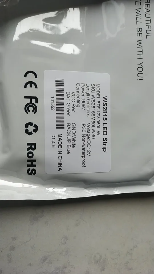 Страна: CZ Emitting Color: WS2815 White PCB Color: 5m 60 IP65 Ships From: Poland Доставка: CAINIAO WAREHOUSE EXPRESS SHIPPING 27.11.2020