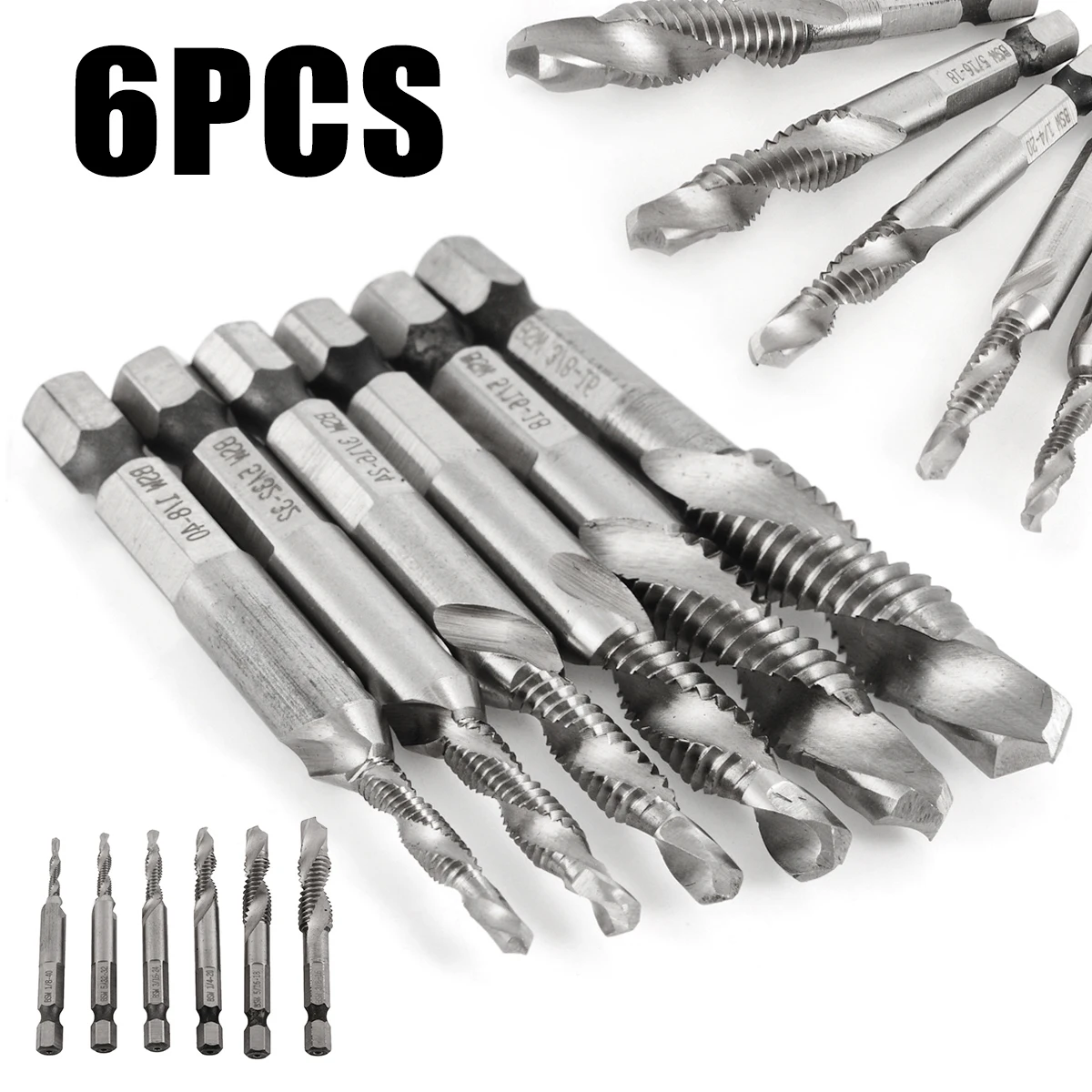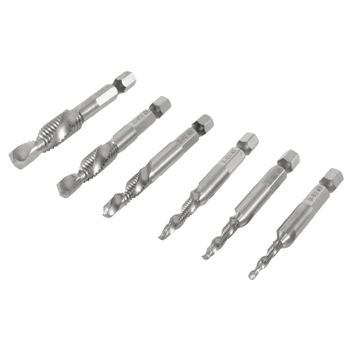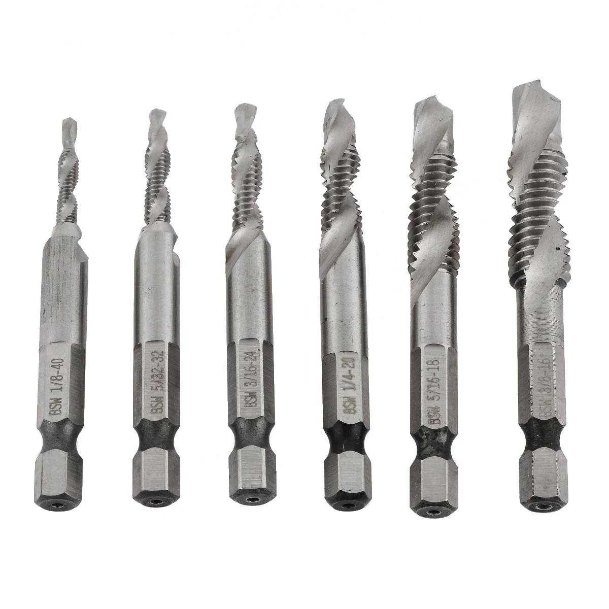 Набор зенковок для снятия заусенцев, 6 шт., 18 дюйма, 532 дюйма, 316 дюйма, 14 дюйма, 516 дюйма, 38 дюйма, 14 дюйма, с шестигранным хвостовиком, сверло-Метчик стандарта SAE дюйма