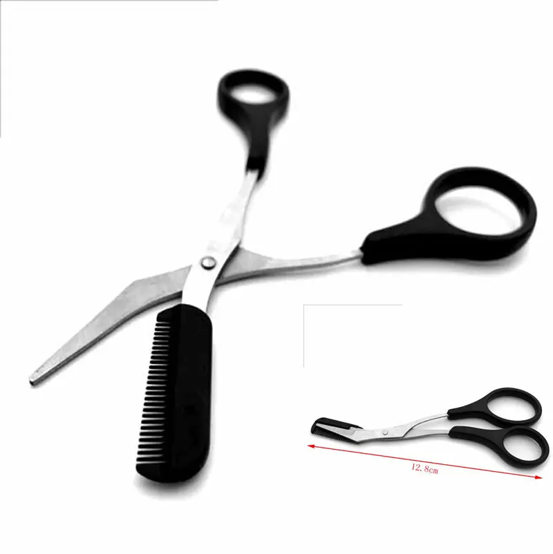1 шт., триммер для бровей из нержавеющей стали, стрижка ресниц, филировочные ножницы, гребень, ножницы для волос, зажим, косметический инструмент для макияжа, 12,8 см