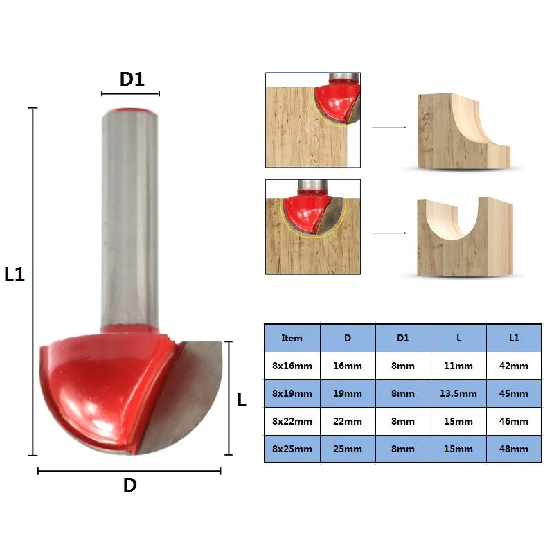 Фреза для контурной обработки углов, 8 мм, 16192225 мм, 1 шт.