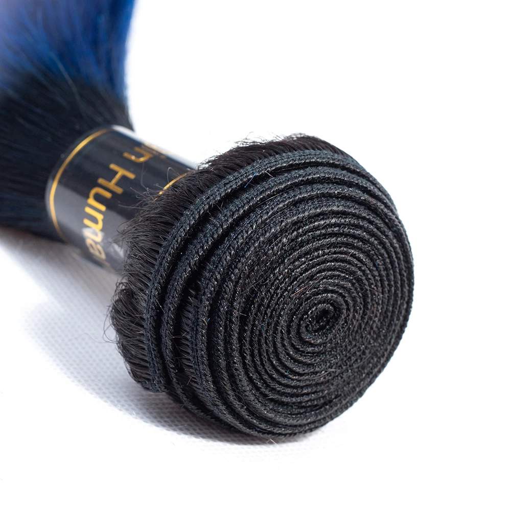 Человеческие волосы QT Ombre, 3 пряди, партия, предварительно окрашенные прямые двухцветные T1BBlue Ombre, бразильские Прямые Натуральные кудрявые пучки волос пряди